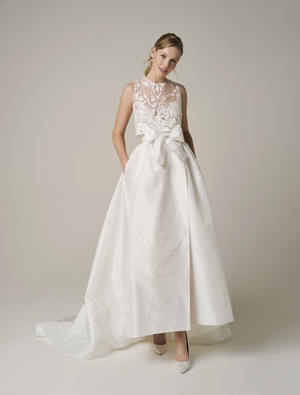 One of the key trends is versatility. Detachable overskirts will take you from day to night or are perfect for sequel weddings, while stunning separates ensure beautiful re-wearability - including new anti-skirt alternatives: sharply tailored trousers and softly flowing jumpsuits. Up the ante with blush or pastel tones (or go all-out with brights and bold patterns), a seductive thigh-high skirt split (front, back or side) or voluminous ball gown with architectural qualities.