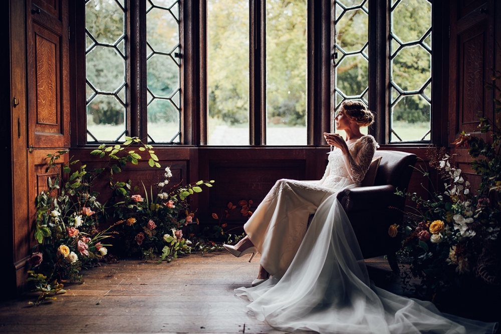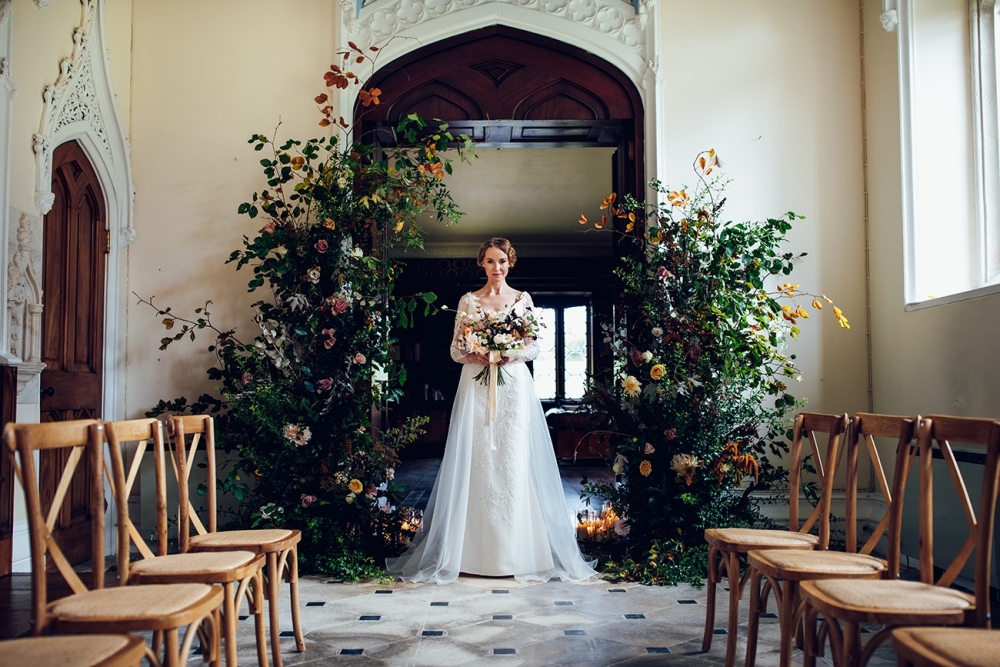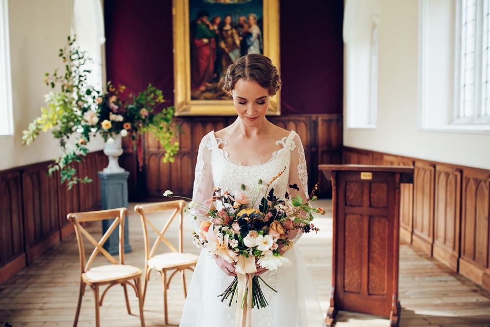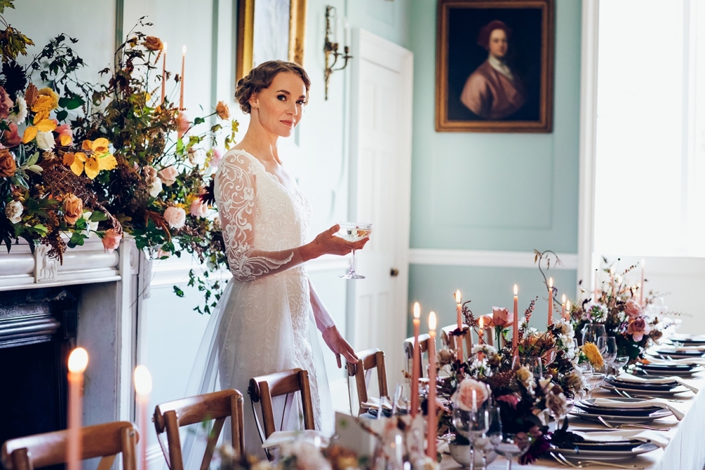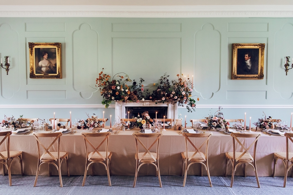 Newly available for private weddings, it is a remarkable place to make your own history. 'The house itself is nestled into nature and comes into its own for romantic celebrations from late summer to late spring,' explains Christine Jensen, who coordinated and styled this beautiful shoot. 'Nature and her changing moods are stitched into the fabric of the calm, elegant spaces. The long shafts of light through the chapel windows are nothing short of magical. From the distinctive octagonal windows to the graceful sweep of the hall stairway, somehow the landscape is always the star.'