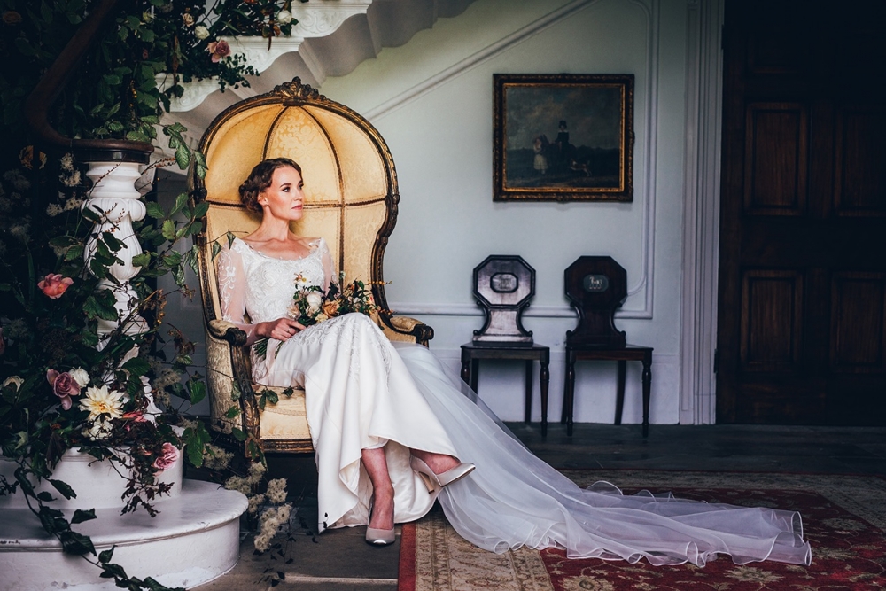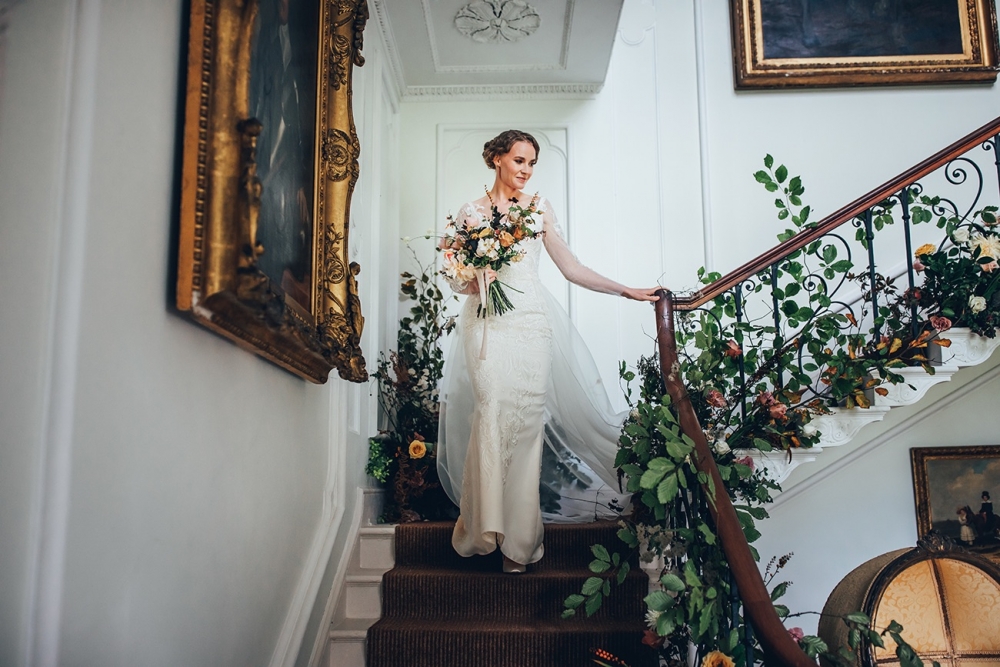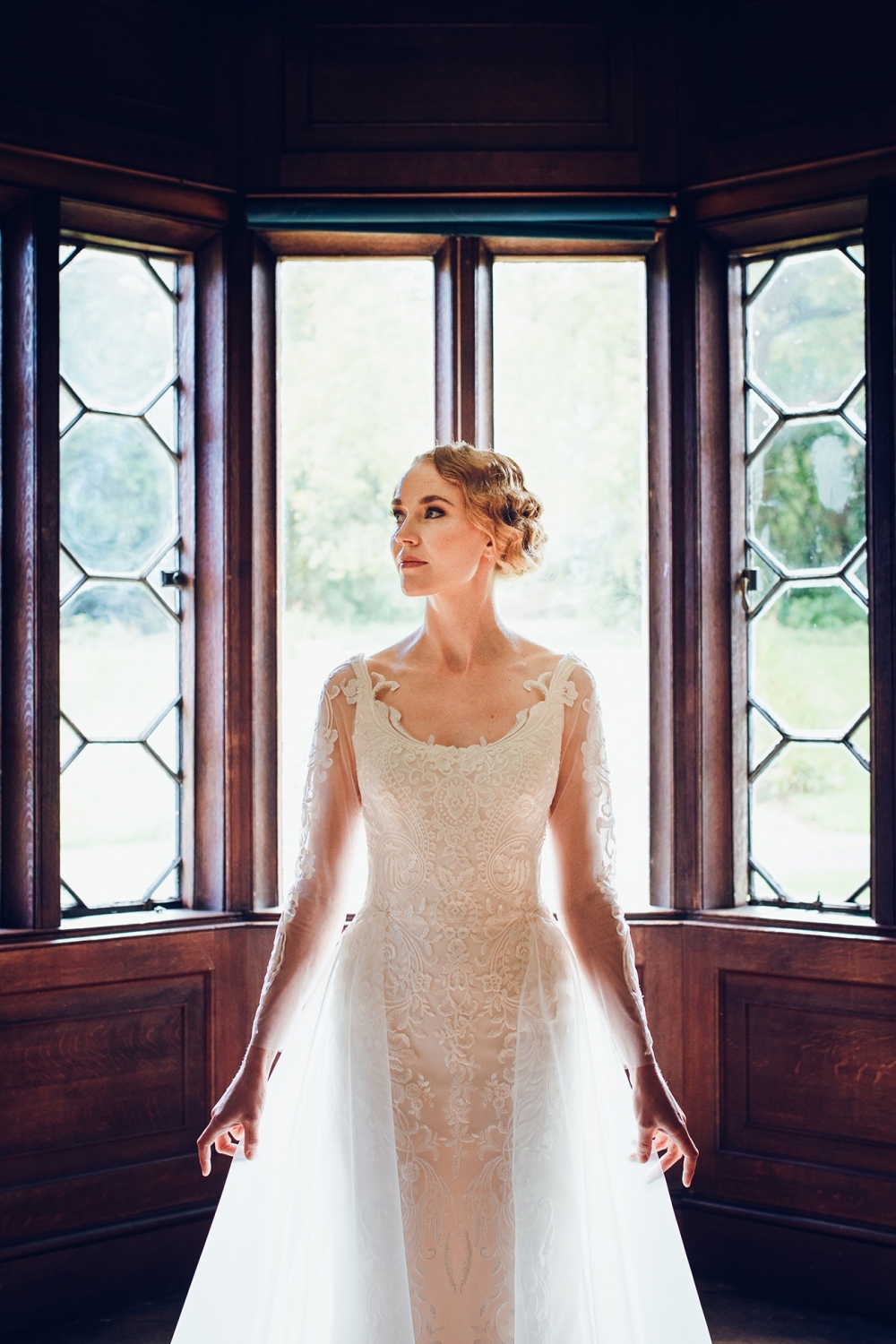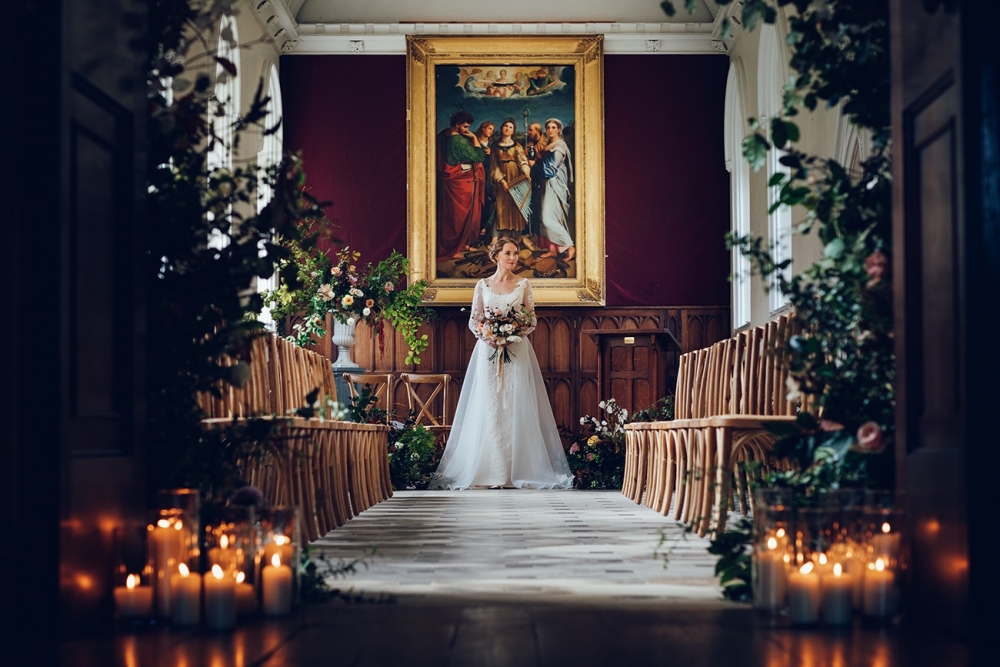 Newly available for private weddings, it is a remarkable place to make your own history. 'The house itself is nestled into nature and comes into its own for romantic celebrations from late summer to late spring,' explains Christine Jensen, who coordinated and styled this beautiful shoot. 'Nature and her changing moods are stitched into the fabric of the calm, elegant spaces. The long shafts of light through the chapel windows are nothing short of magical. From the distinctive octagonal windows to the graceful sweep of the hall stairway, somehow the landscape is always the star.'
