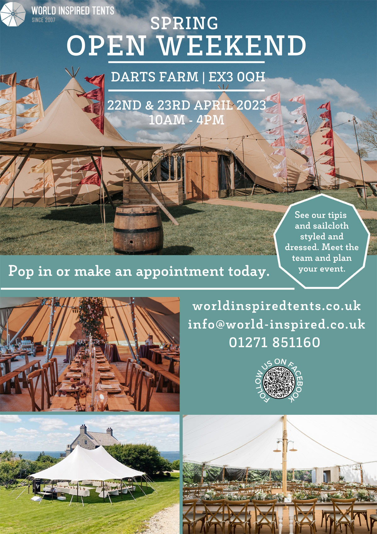 Say hello to spring with a planning event set to inspire and entertain at one of Devon’s most beautiful locales during the World Inspired Tents Open Weekend at Darts Farm on Saturday 22nd & Sunday 23rd April (10am-4pm).