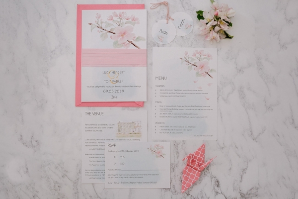 Inspired by Japan's sakura season, when the streets and parks of the Far East are awash with pink cherry blossom, this styled shoot is brimming with delicate florals, the palest of pinks and the most romantic of details to create an enchanting spring wedding scene.