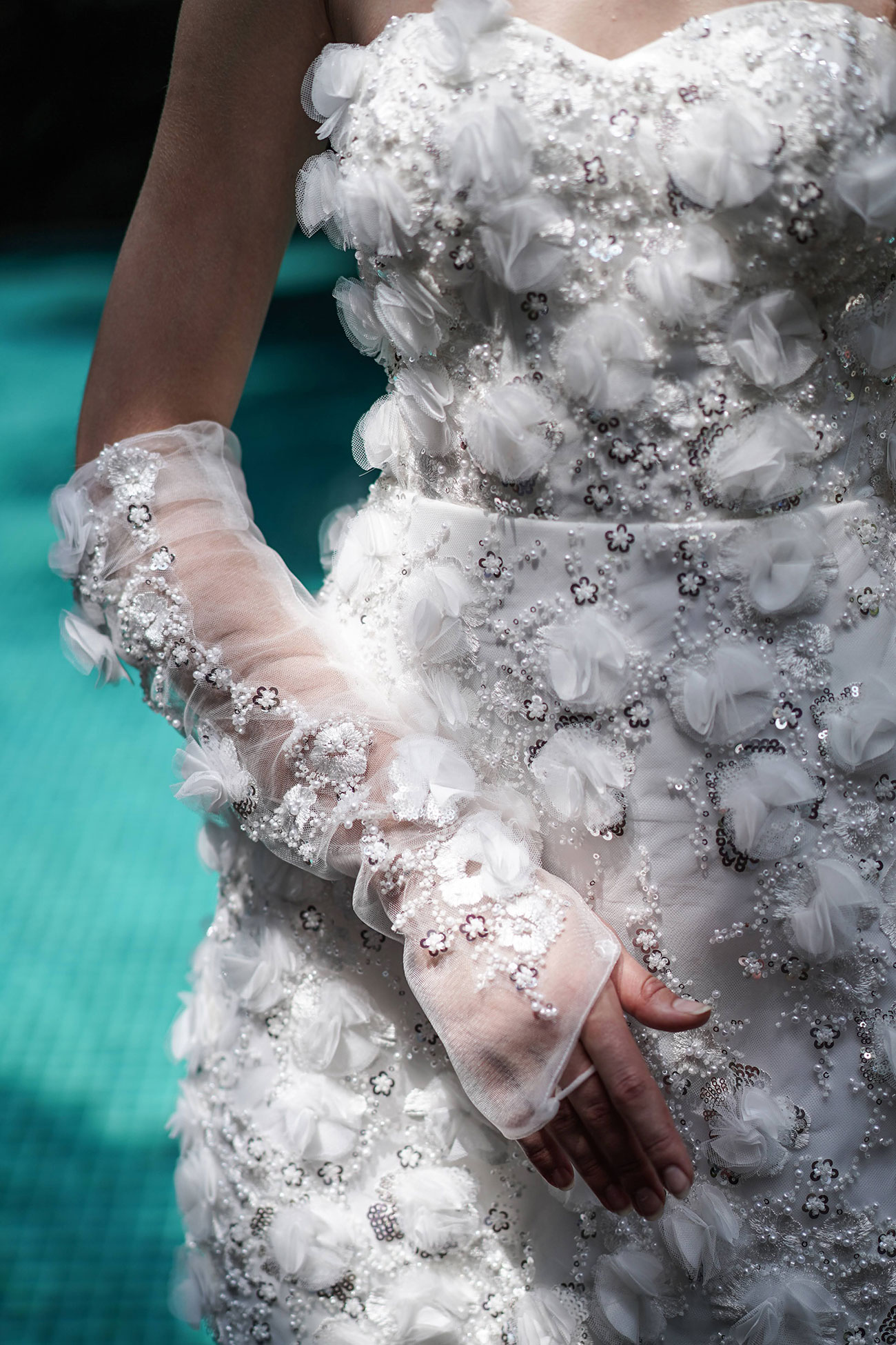 Bloom, for example, blends fun with femininity thanks to its corseted bodice, gathered skirt and pretty bow detailing, while Taylor is awash with 3D florals, sequins and embroidery for a truly head-turning look. Then there’s Pearl, which echoes the intricate beauty of wedding cake icing with its hand-embellished pearl detailing – a dream for brides who love a touch of romance.