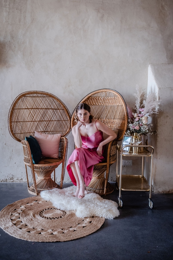 “Upton Barn & Walled Garden is an amazing venue for providing lots of rooms and areas so the bridal party and their guests can really spread out and each area can be styled without having to ‘turnover’ rooms halfway through the day,” says Nikki. “We utilised the gorgeous seating area in the barn, adding rattan tables, cushions and throws and more beautiful floral arrangements in vases. A further seating area with a cocktail cart was also created and would be the perfect spot for guests to take selfies in the statement peacock chairs.”
