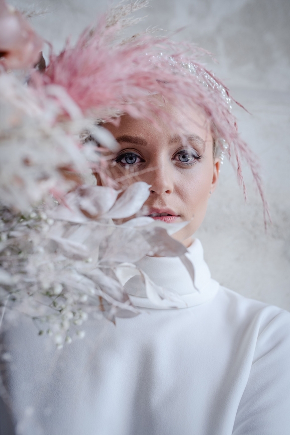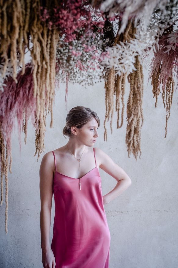“The inspiration for the shoot started with the curves and pastel schemes seen in so many interiors trends this year,” explains Nikki Sherriff of Knots & Kisses, who coordinated and styled the shoot. “We also wanted to reclaim the colour pink for weddings, without it being the muted blush colour which has been so prevalent over the last decade.”