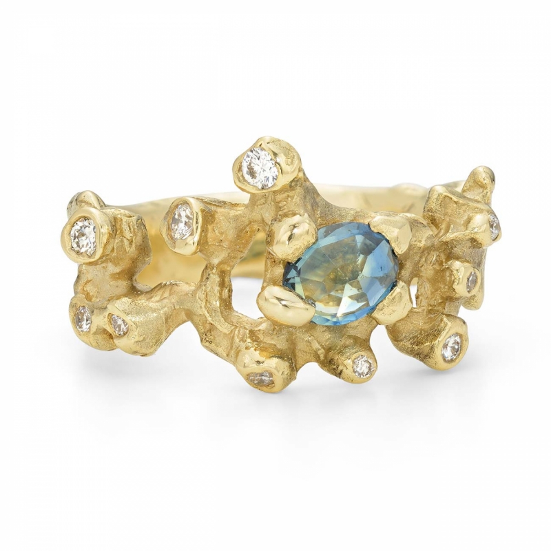 emilynixon.com). “Crafted around the seaweed settings she invented, her rings follow an undulating natural form, the irregular handmade settings calling for an equally unusual array of gemstones.”