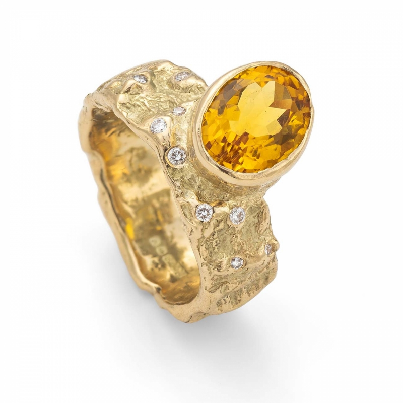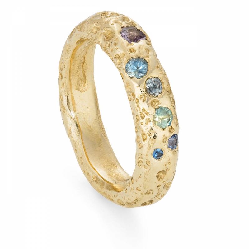 justind.co.uk). “Stones are a great way of adding character to your wedding ring,” says Jamila Hirtenstein at Justin Duance. “We have been using lots of reclaimed diamonds that we set in a scatter around our extra texture sandcast rings; the result is a really interesting organic piece with little diamonds peeping out of the gold as if they have grown there.”