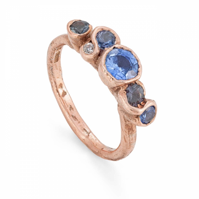 With her studio located a stone’s throw from the water, interesting combinations of gemstones reflective of her surrounding landscape feature heavily in Emily’s work. “An extension of Emily’s artful designs, the gemstones Emily sources are hand-picked to work in her distinctive earth and ocean palette,” explains Chloe. “Sapphires and diamonds make up the majority of stones Emily sources for her designs although she does occasionally use rubies, emeralds and topaz. The natural hues in sapphires, ranging from azure ocean blue to dusky earth rose, suit the natural palette Emily favours.”