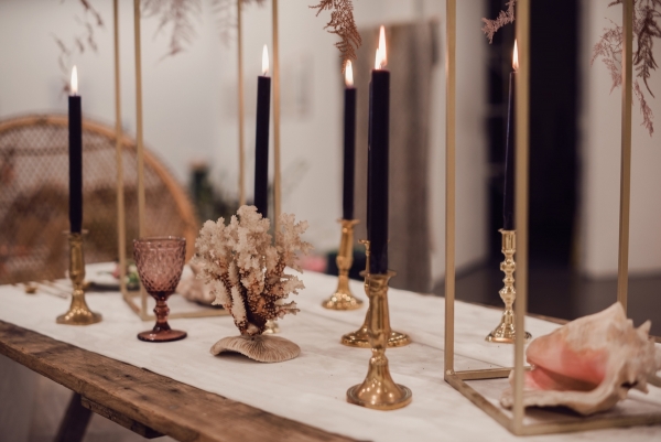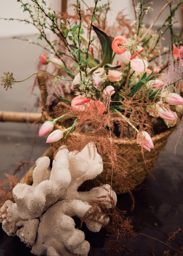 The florals take centre stage, shades of flushed pink, bright coral, earthy browns and luxe gold capture the warm and relaxed mood of a Californian beach ceremony. A bamboo ceremony tent makes a striking focal point, while shells, wicker and coral detailing provides an artful modern twist on beach styling.