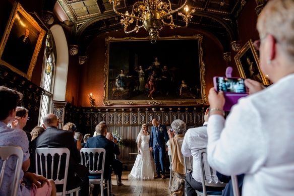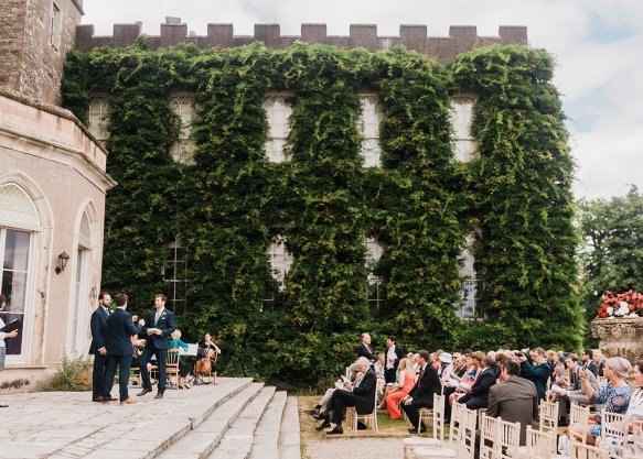 The grandeur of the castle's state rooms provides the perfect contrast to the great outdoors. The State Dining Room is a magnificent setting with its fine oak panelling and large open fire. Licensed for ceremonies of up to 100, it's also a wow-worthy space for a banquet and can host a band, DJ or harpist on the minstrels' gallery above. The Libraries offer the perfect backdrop for a ceremony or reception bathed in the natural light with picturesque views across the Deer Park. Then there's the Music Room, a spectacular setting for a celebration with far-reaching vistas across the estuary. The largest room in the castle, it can accommodate 140 for a ceremony or 120 for dinner; home to a recently refurbished organ and grand piano, and complete with a stunning dome that will take the magic of your first dance to new heights, it is a captivating space for a reception.