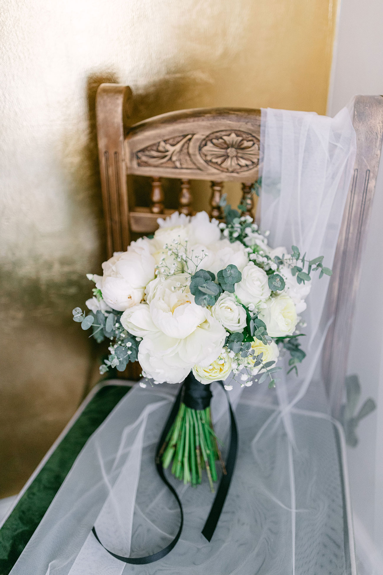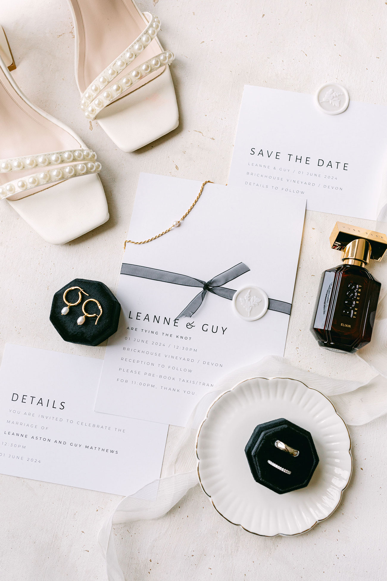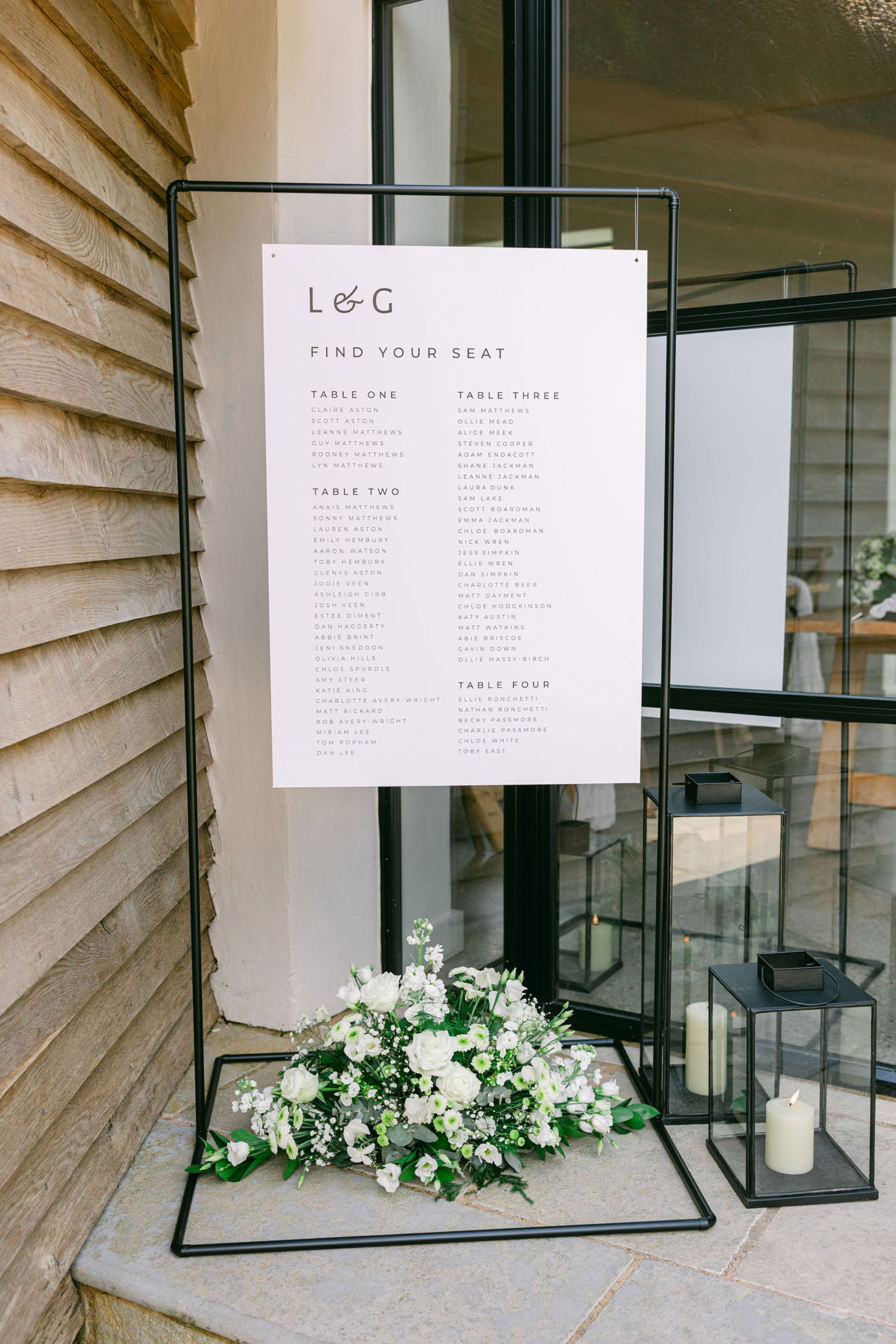 As soon as the couple set eyes on the rustic-luxe aesthetic of Brickhouse Vineyard, they knew it would be the perfect backdrop for their wedding day. Deciding on a minimal black-and-white colour scheme, Guy and his groomsmen opted for timeless black-tie, while the bridesmaids wore sleek black gowns. The contemporary monochrome styling carried throughout the tablescapes, which were dressed with crisp white linens and chic black candleholders and charger plates.
