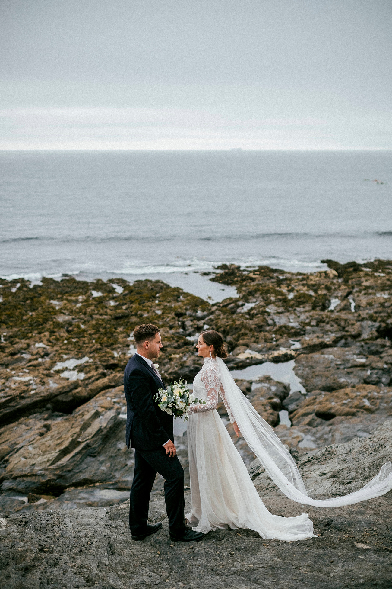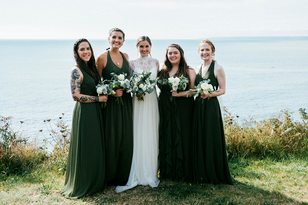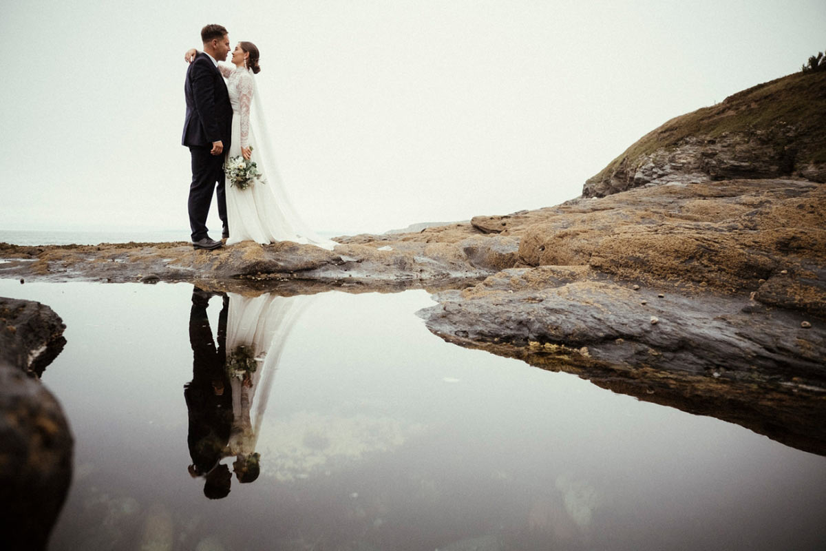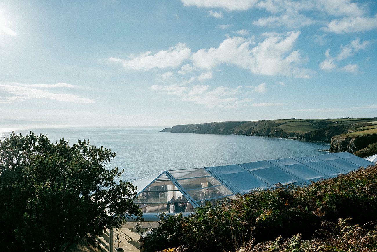 Switching coastlines for their waterside wedding, the couple decided to marry at Porthleven Methodist Church followed by a marquee reception overlooking the ocean at Beacon Crag. “We always knew we wanted to get married by the sea and we grew up going to Masked Ball parties at Beacon Crag every year when we were teenagers, so it felt like the perfect place for us,” explains Morwenna.