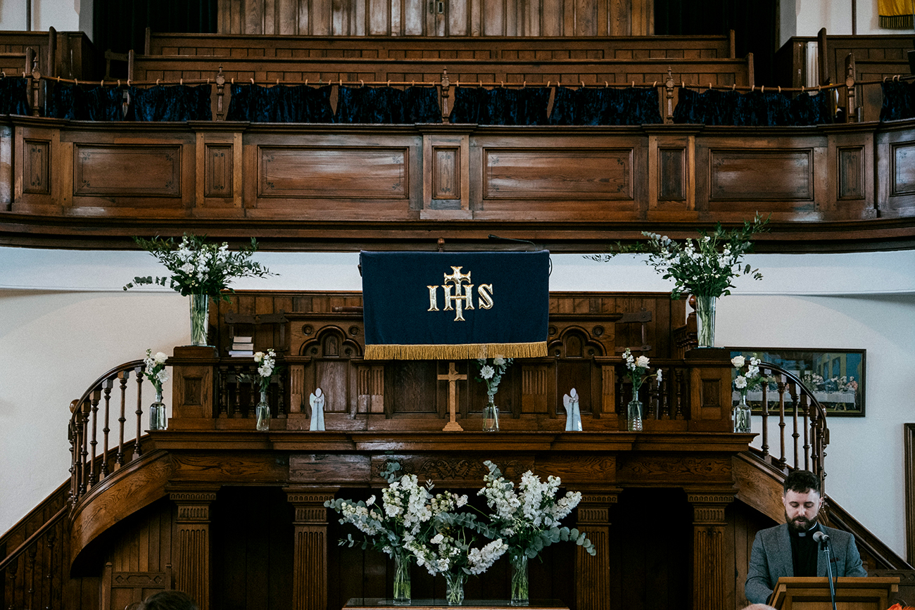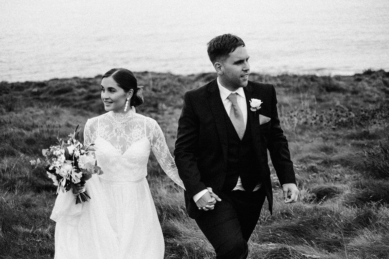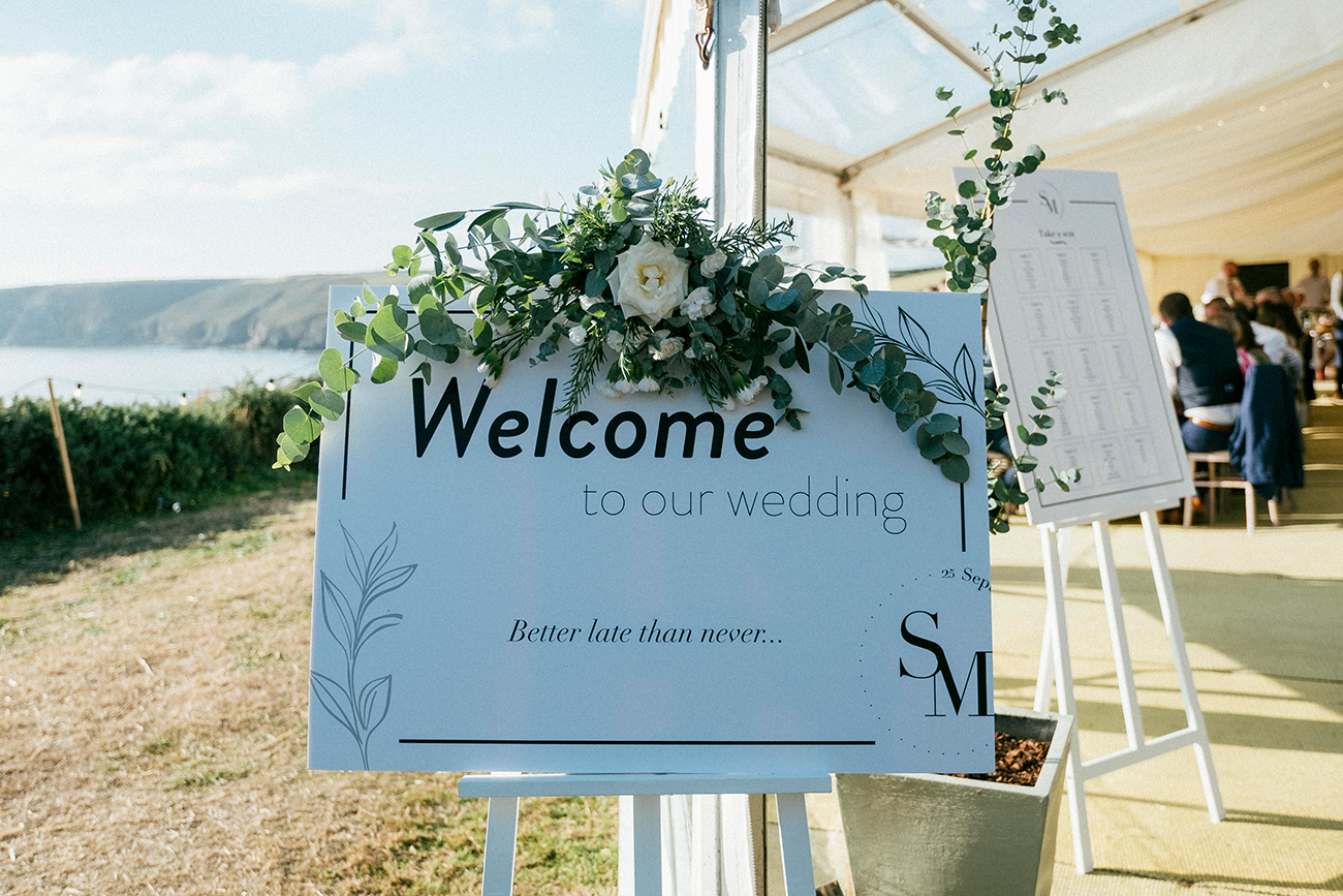 Switching coastlines for their waterside wedding, the couple decided to marry at Porthleven Methodist Church followed by a marquee reception overlooking the ocean at Beacon Crag. “We always knew we wanted to get married by the sea and we grew up going to Masked Ball parties at Beacon Crag every year when we were teenagers, so it felt like the perfect place for us,” explains Morwenna.