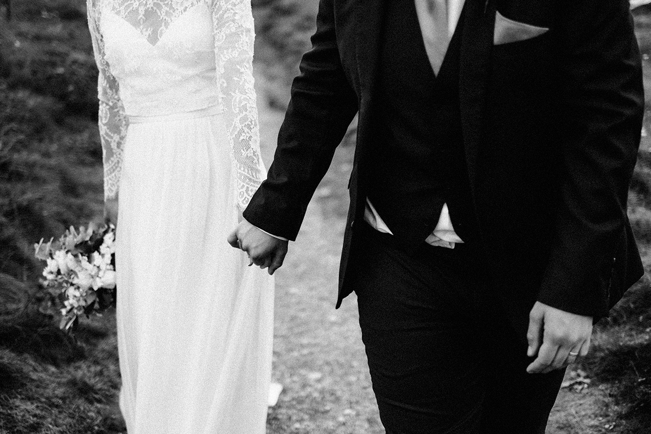 The sense of transition between day and night was not only achieved through the décor, but Morwenna’s wedding dress: a Catherine Deane gown featuring a sweetheart neckline with a long sleeve lace top. “I took the top off for the evening and had my hair down, so I was ready to party!” she says. “It felt more relaxed and was a completely different look without having to take off my gown.”