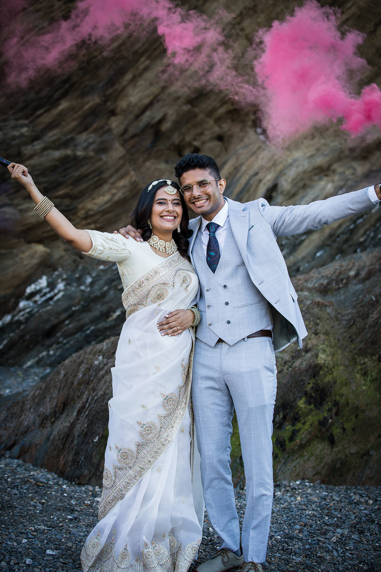 Having met at college and been together ever since, Albin popped the question to Manasa at Heathrow Airport on her return from India. Saying yes sparked their search for a wedding venue, which led them to Arches Beach Weddings in Combe Martin.