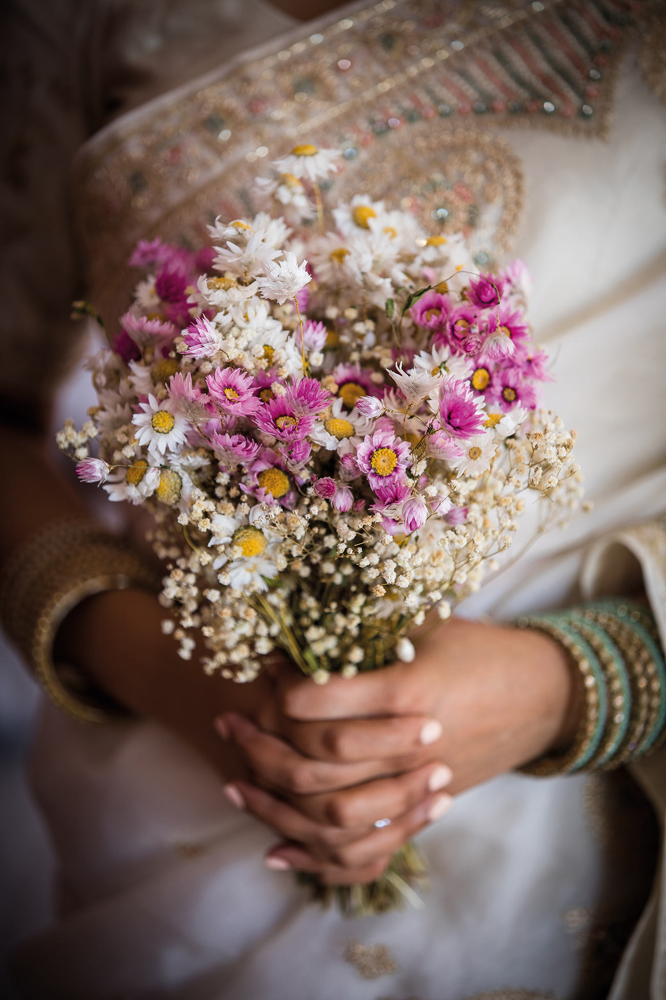 While Manasa wore a dazzling sari and Albin donned a pale blue suit, the bridesmaids carried the day’s pastel palette in soft shades of pink, which echoed the dainty blooms of the bridal bouquet. “We asked our parents to wear traditional wear in vibrant colours to bring a little bit of home with us on our day,” explains Manasa.