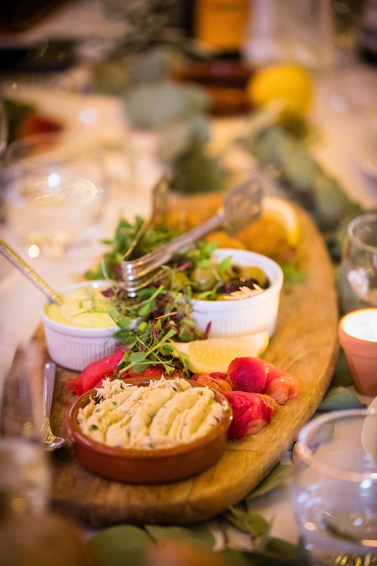 After the ceremony, guests enjoyed drinks and canapés in the grounds before sitting down to a sharing-style seafood feast inspired by the Devon coastline. The menu featured Brixham crab arancini, potted smoked mackerel and an indulgent surf and turf feast served with an array of sides.