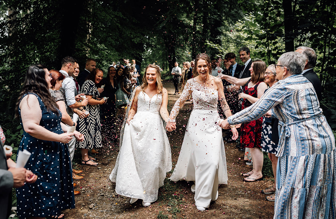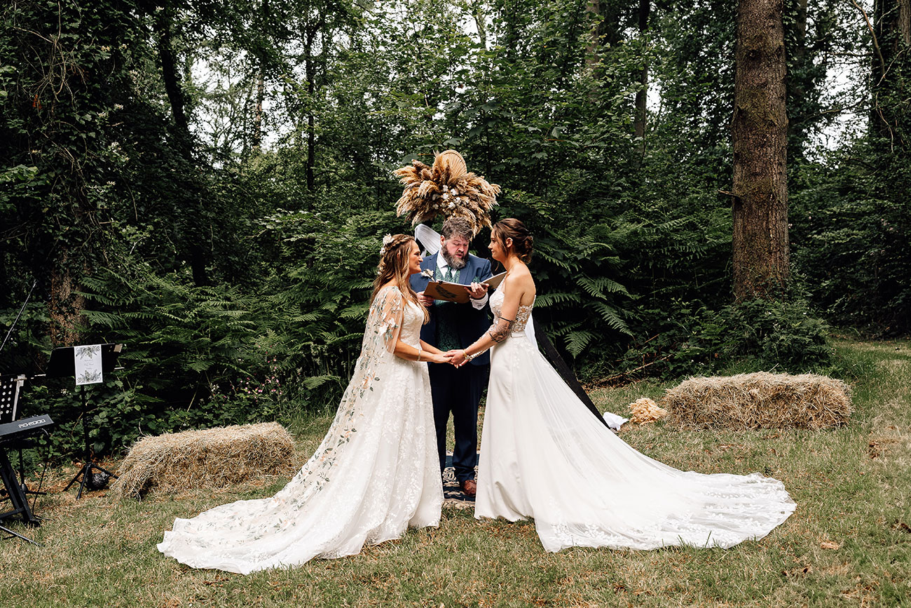 The setting itself made the day unforgettable. “Being in the forest glade surrounded by bracken, trees and birdsong was our favourite moment,” says Holly. “Standing there with all our most loved people in the world and reading our letters to each other – there wasn’t a dry eye in sight.”