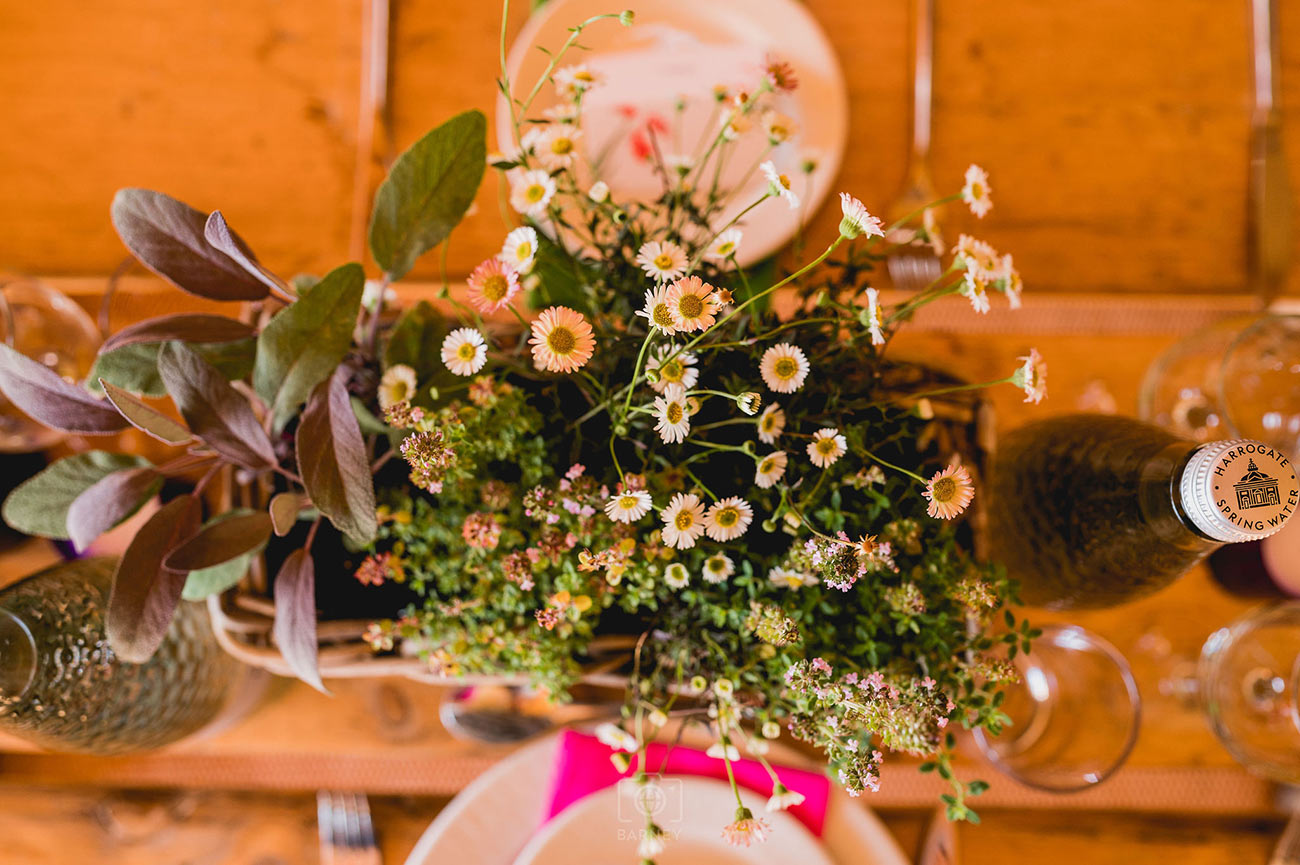 “My brother, Nick, cultivated and created all the fresh flowers and plants for the day, as well as hangers and boxes,” she says. “We wanted everything to be living and continue beyond just the wedding day – except my bouquet, which was hand-picked by my mum from her garden in St Hilary that morning.” The baskets were filled with cottage garden flowers and Nick also created small woven baskets for the tables, filled with herbs and flowers, for guests to take home as favours.