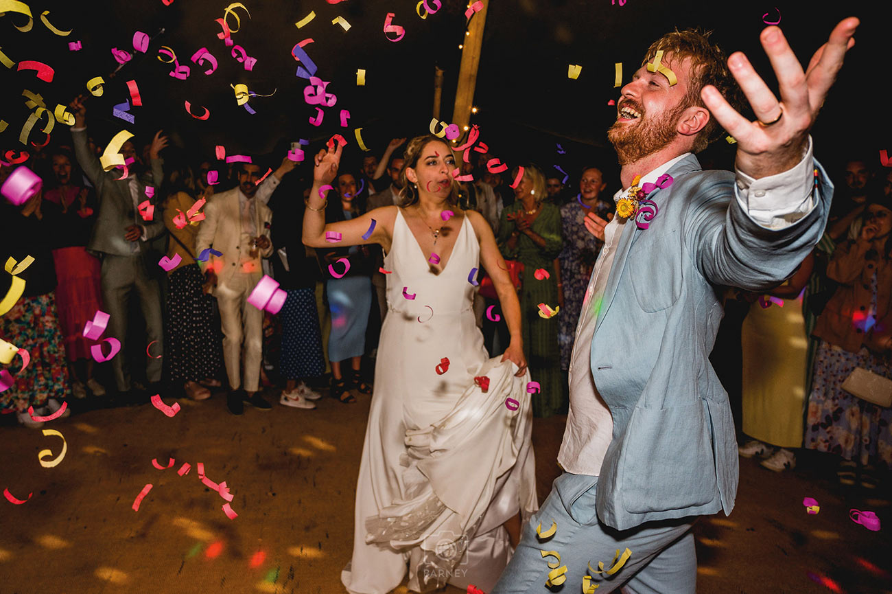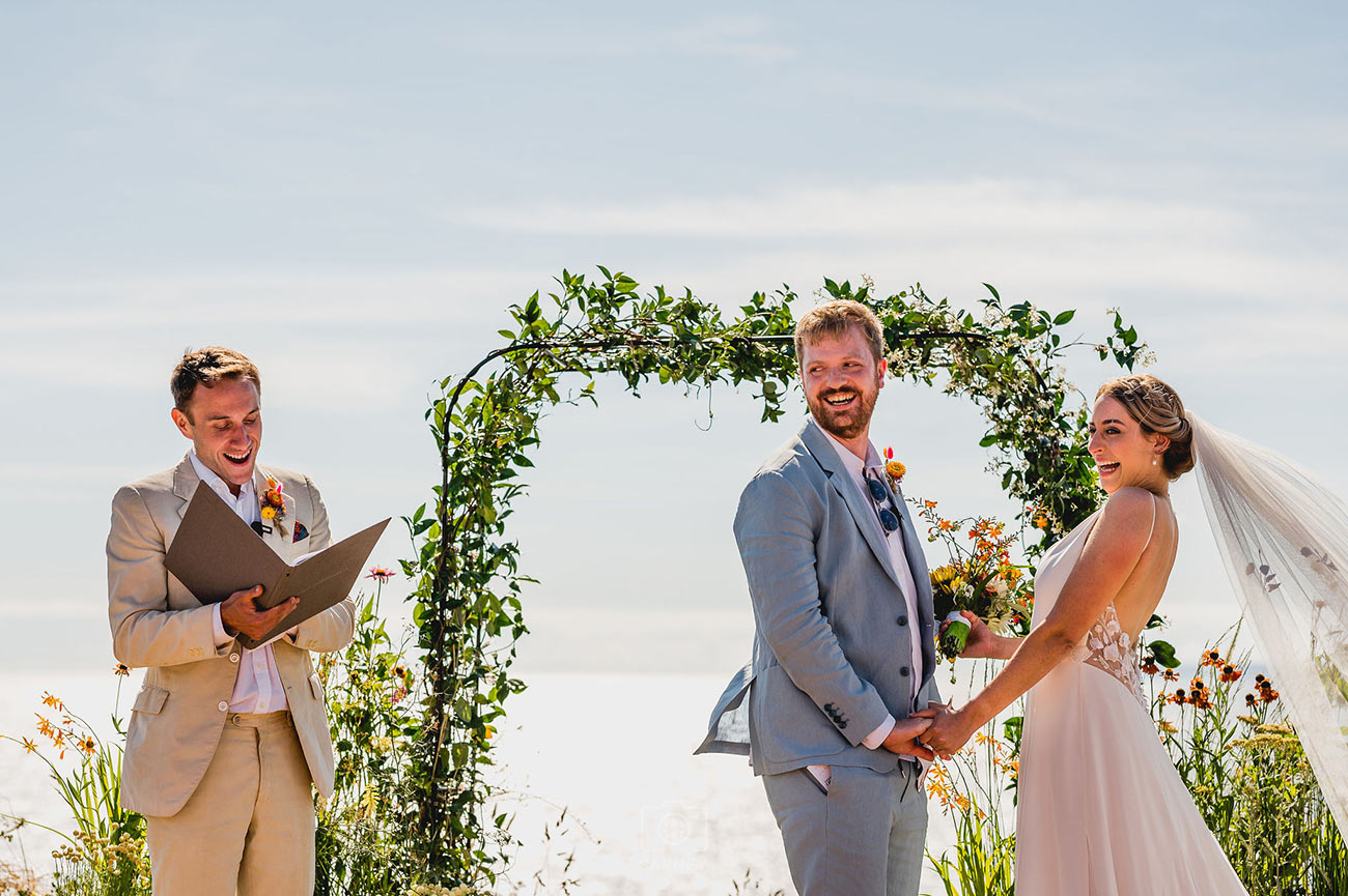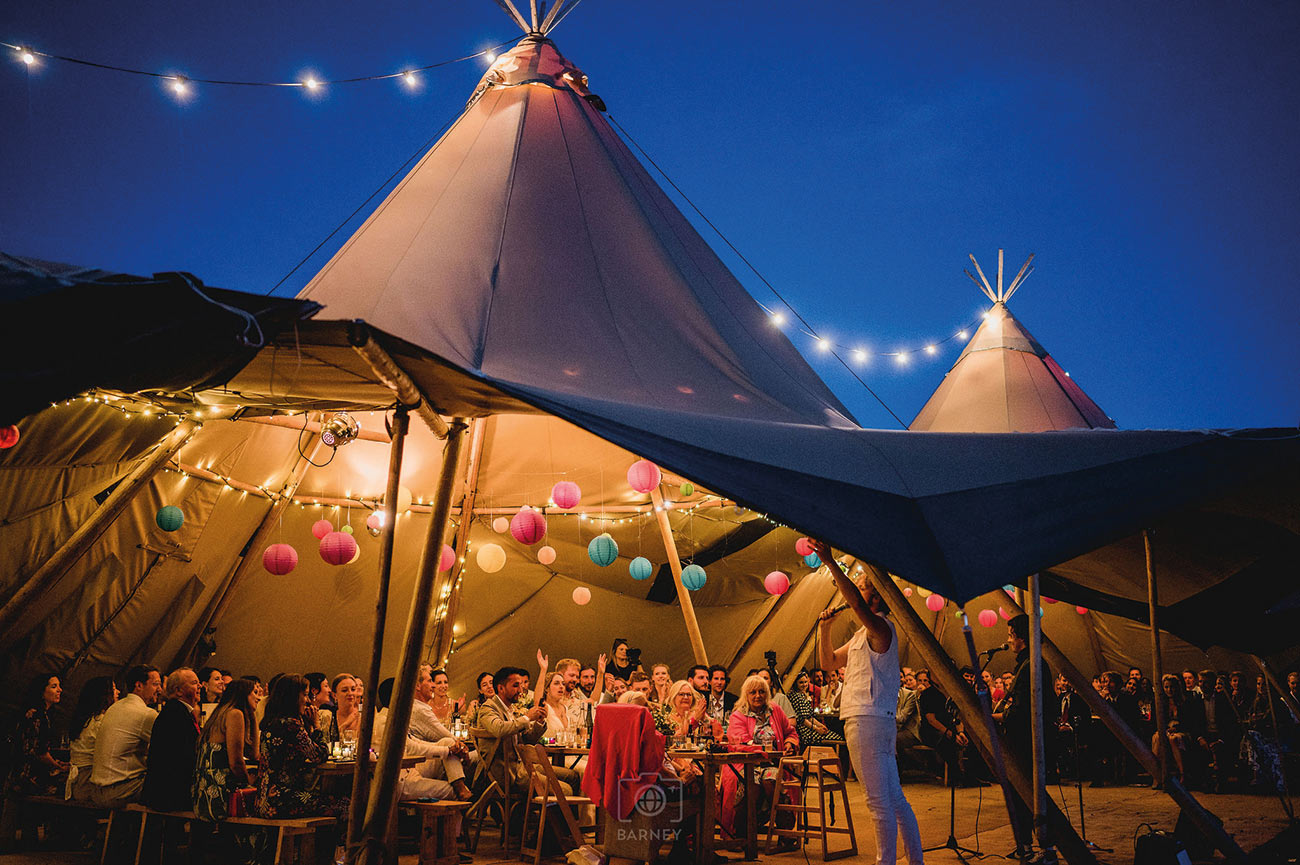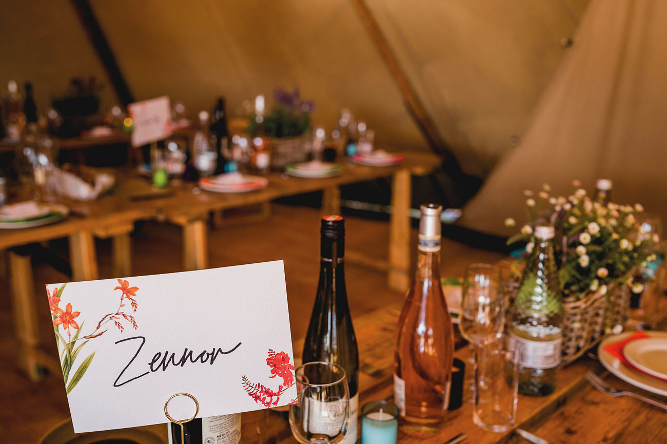 The couple’s “deeply personal, emotional and thoughtful” ceremony was followed by clifftop drinks and canapés before a move to the dining tipi saw guests being treated to beef and catch of the day with Cornish new potatoes, followed by brownies. A performance by Sam’s brother and his comedy partner had everyone crying with laughter, and the hilarity continued with the speeches, which were also punctuated with many moving moments.