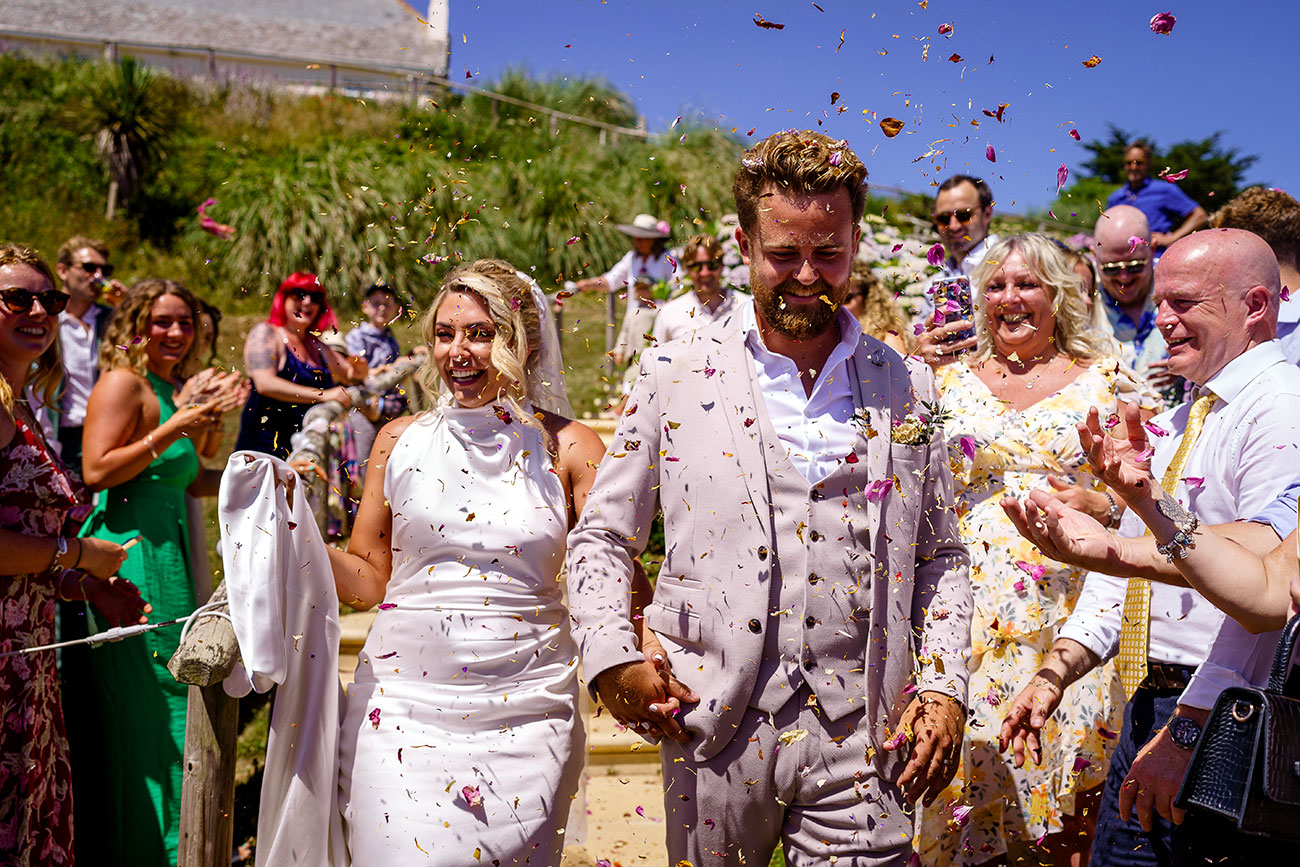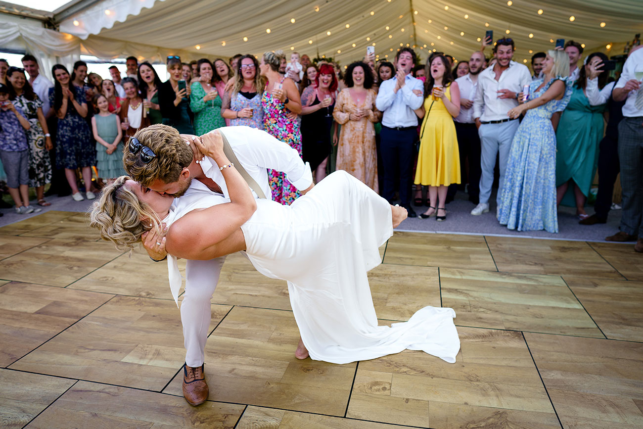 It was during a trip to Polzeath, a special place for the couple where they love to spend the solstice weekend, that Sam proposed in a secluded spot watching the sun set over the sea – and they had their hearts set on another dreamy coastal location for their big day. With his work as a musician (Sam Fearon Music) taking him across the length and breadth of Devon, Sam had performed at Mount Folly Farm – the home of Bigbury Bay Weddings – and, with its sweeping views across their favourite place, Bantham Beach, the couple couldn’t imagine a more perfect location for their wedding.
