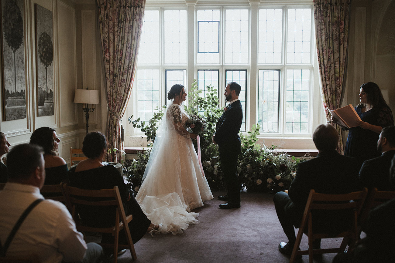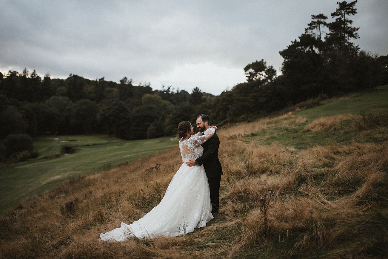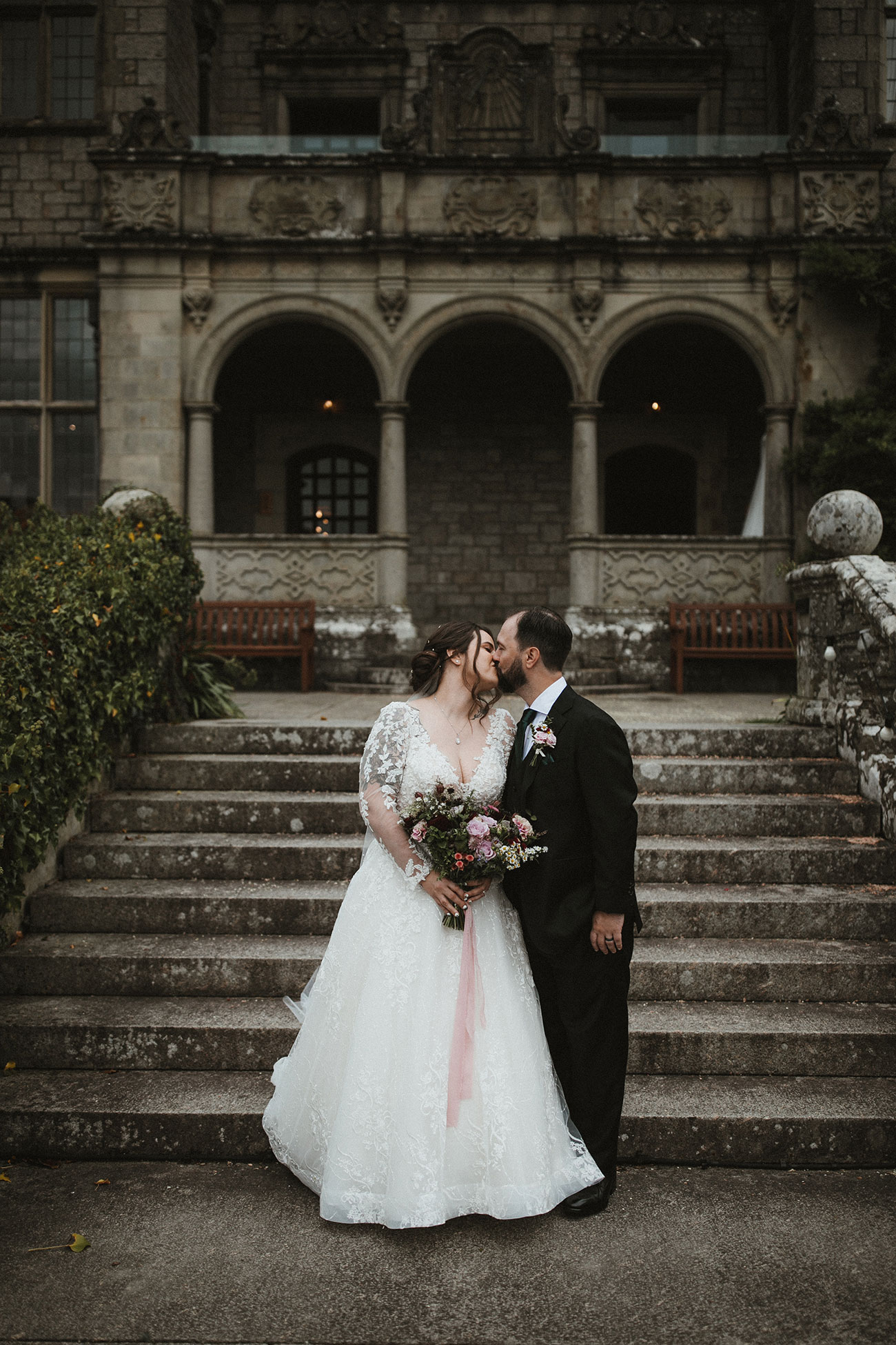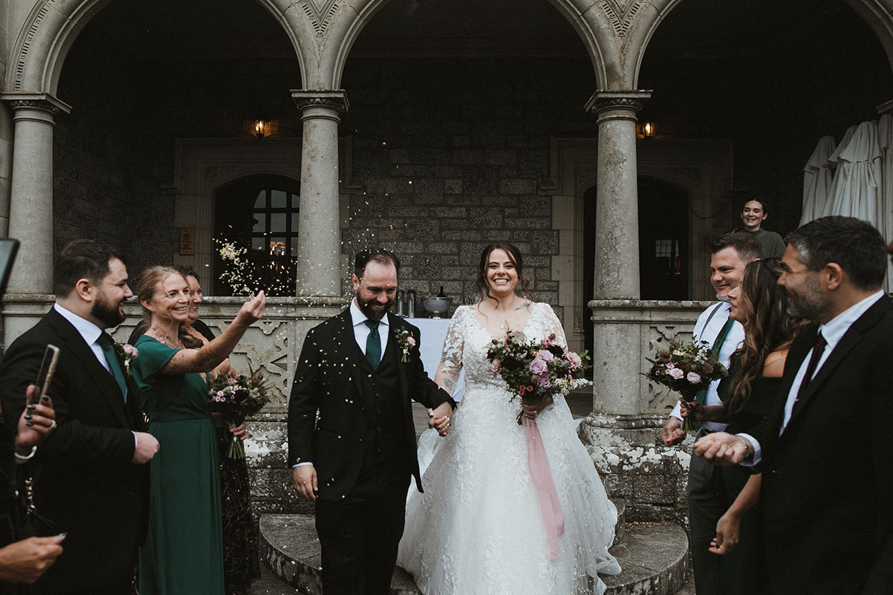 Set against the rolling landscape of Dartmoor, Bovey Castle provided the perfect backdrop to bring their forest-meets-mountain celebration to life. A rich and earthy palette of dark greens and autumnal shades of mauve and brown set the scene, while a breathtaking flower meadow transformed the ceremony room, bringing the wild outdoors in.
