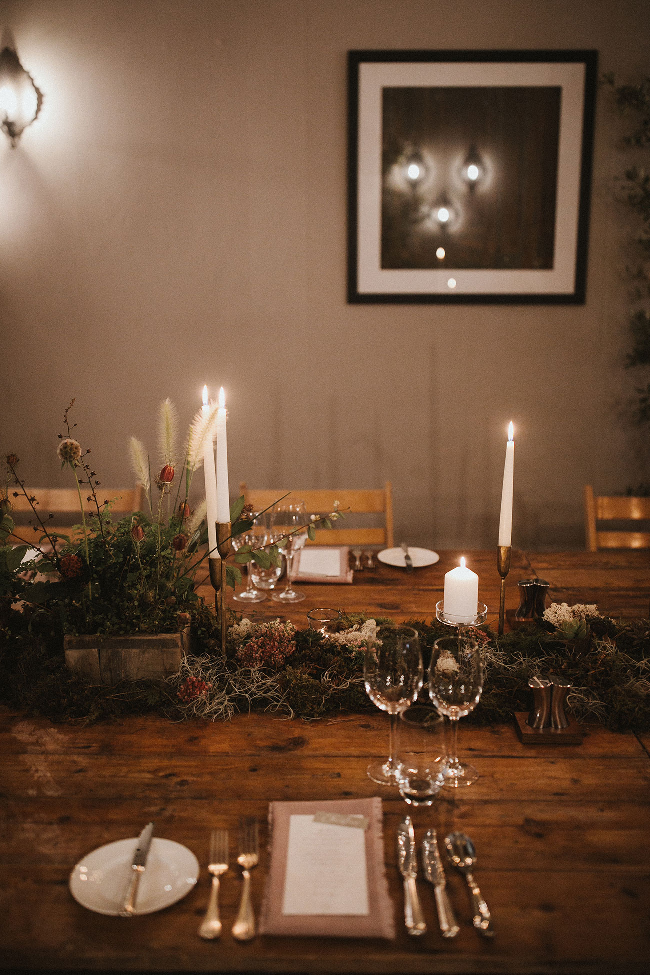 Following the ceremony, the couple shared a private first look at their beautifully styled reception space. “We were absolutely stunned by what our planner, Laura, had created!” says Amanda. The tablescape was a vision of woodland elegance, with abundant foliage, rich forest-floor hues, textured accents and moss green linen perfectly capturing their enchanting forest aesthetic.