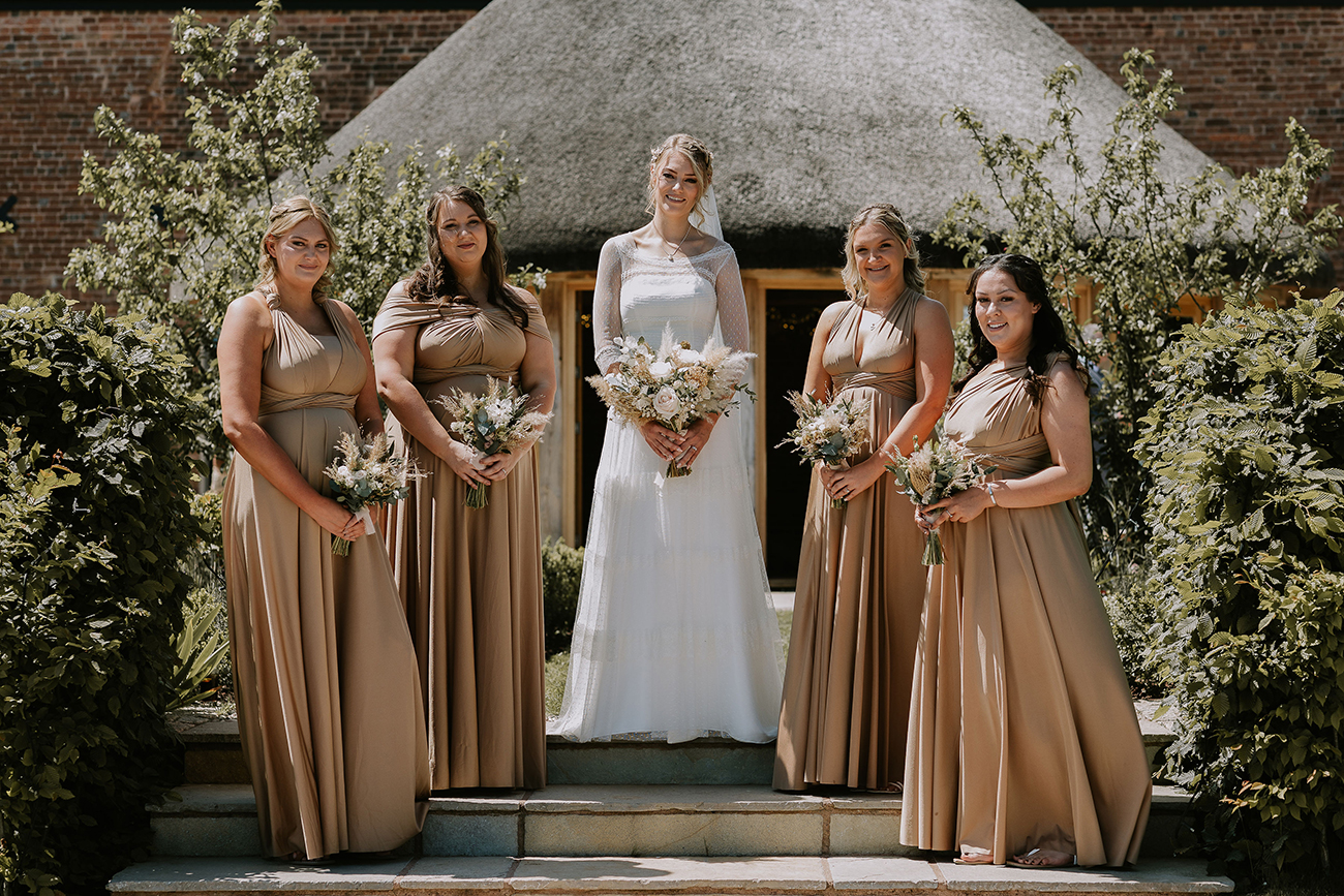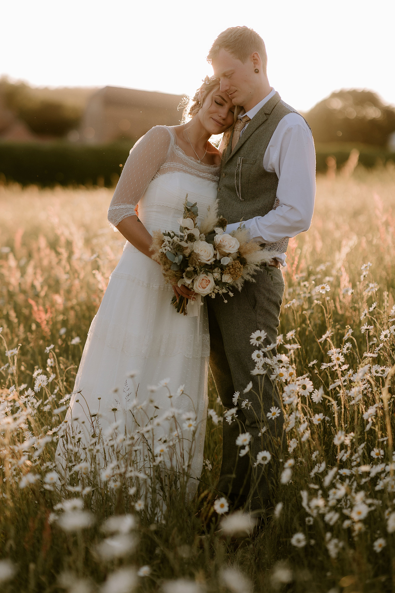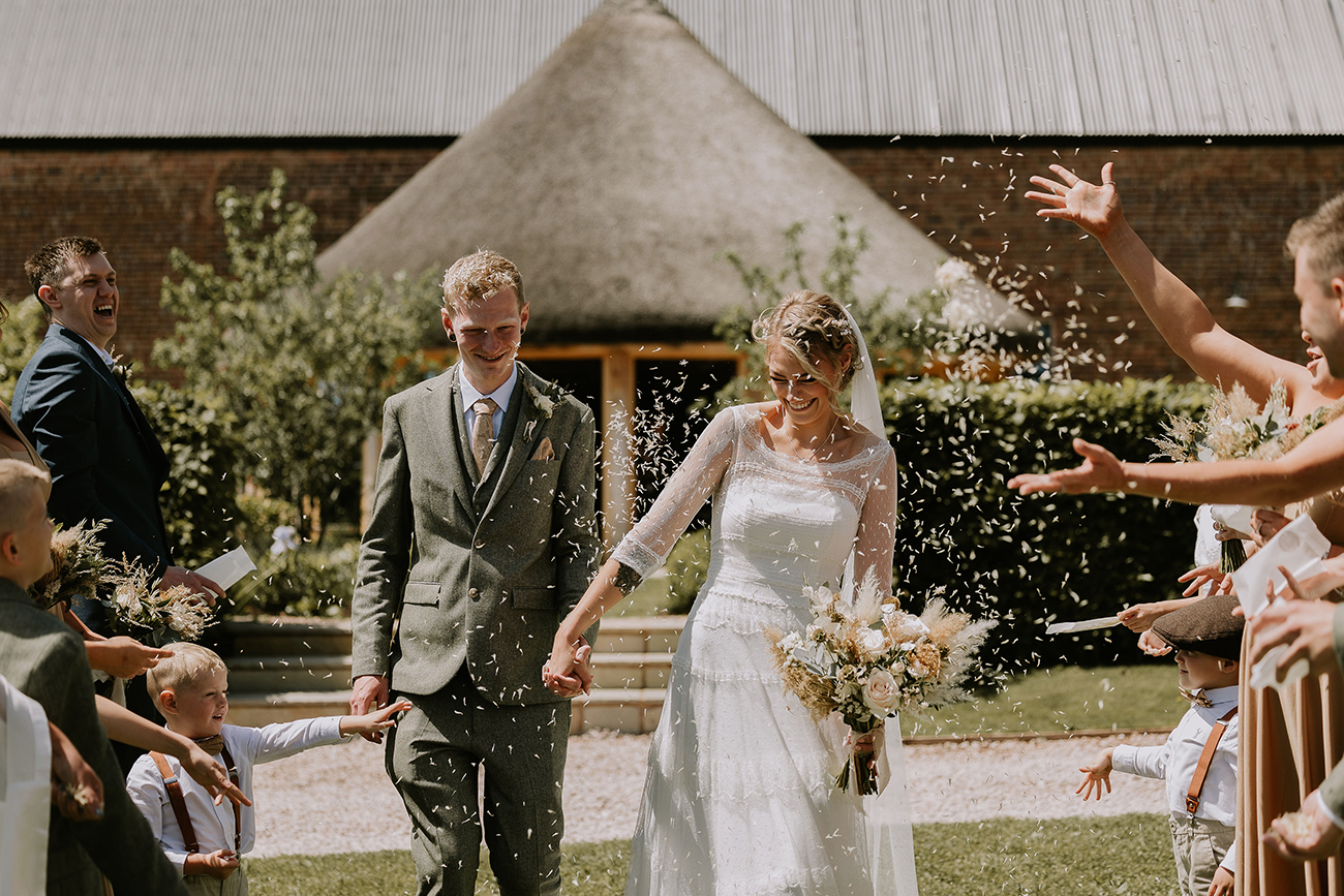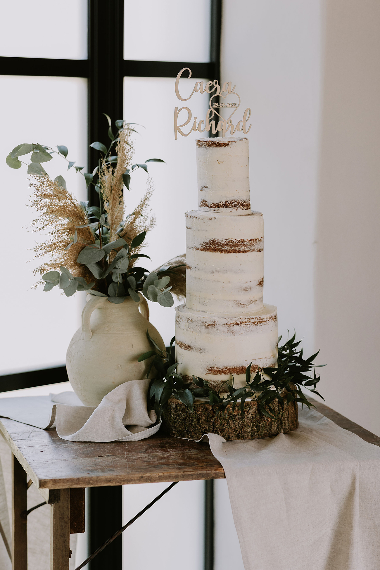 Caera and Rich had a clear vision for their day. “We wanted something intimate, romantic and close to us in Devon, and Brickhouse Vineyard was just perfect! It has beautiful views with a cosy barn vibe,” she says. Wedding stylist Nikki Sherriff from Knots & Kisses helped them to create a day inspired by neutral and earthy tones featuring dried pampas, cream wildflowers and lots of greenery. “She made everything completely stress-free and it all looked perfect on the day,” comments Caera.