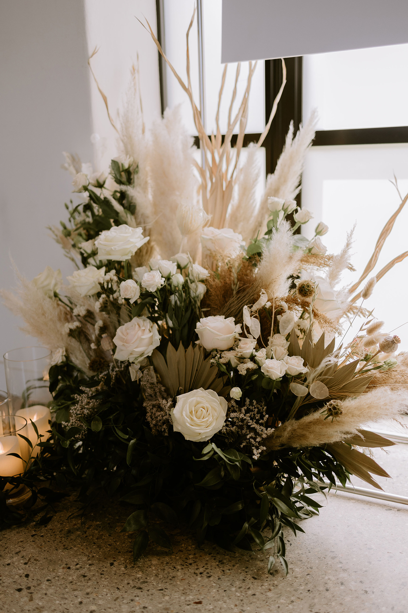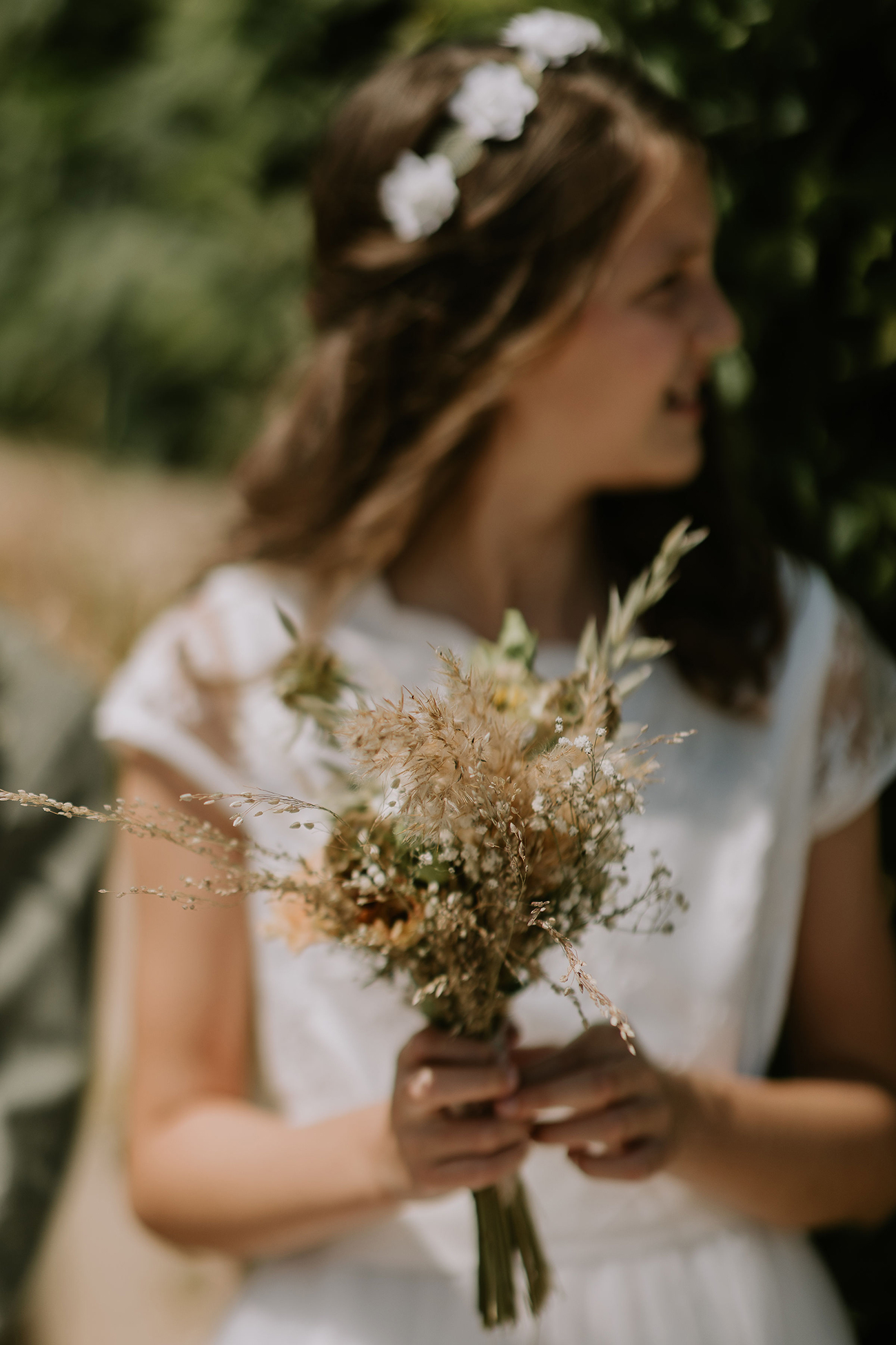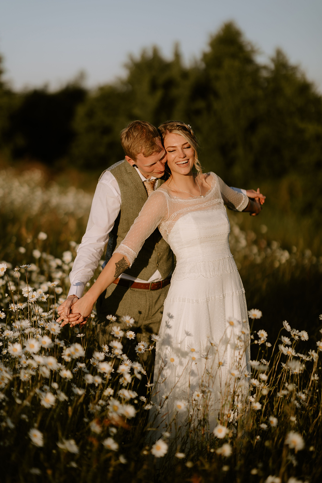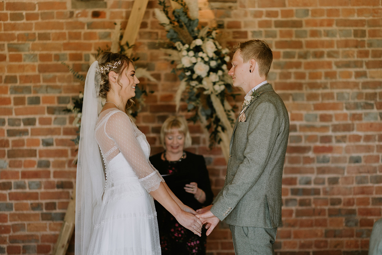 Caera and Rich had a clear vision for their day. “We wanted something intimate, romantic and close to us in Devon, and Brickhouse Vineyard was just perfect! It has beautiful views with a cosy barn vibe,” she says. Wedding stylist Nikki Sherriff from Knots & Kisses helped them to create a day inspired by neutral and earthy tones featuring dried pampas, cream wildflowers and lots of greenery. “She made everything completely stress-free and it all looked perfect on the day,” comments Caera.