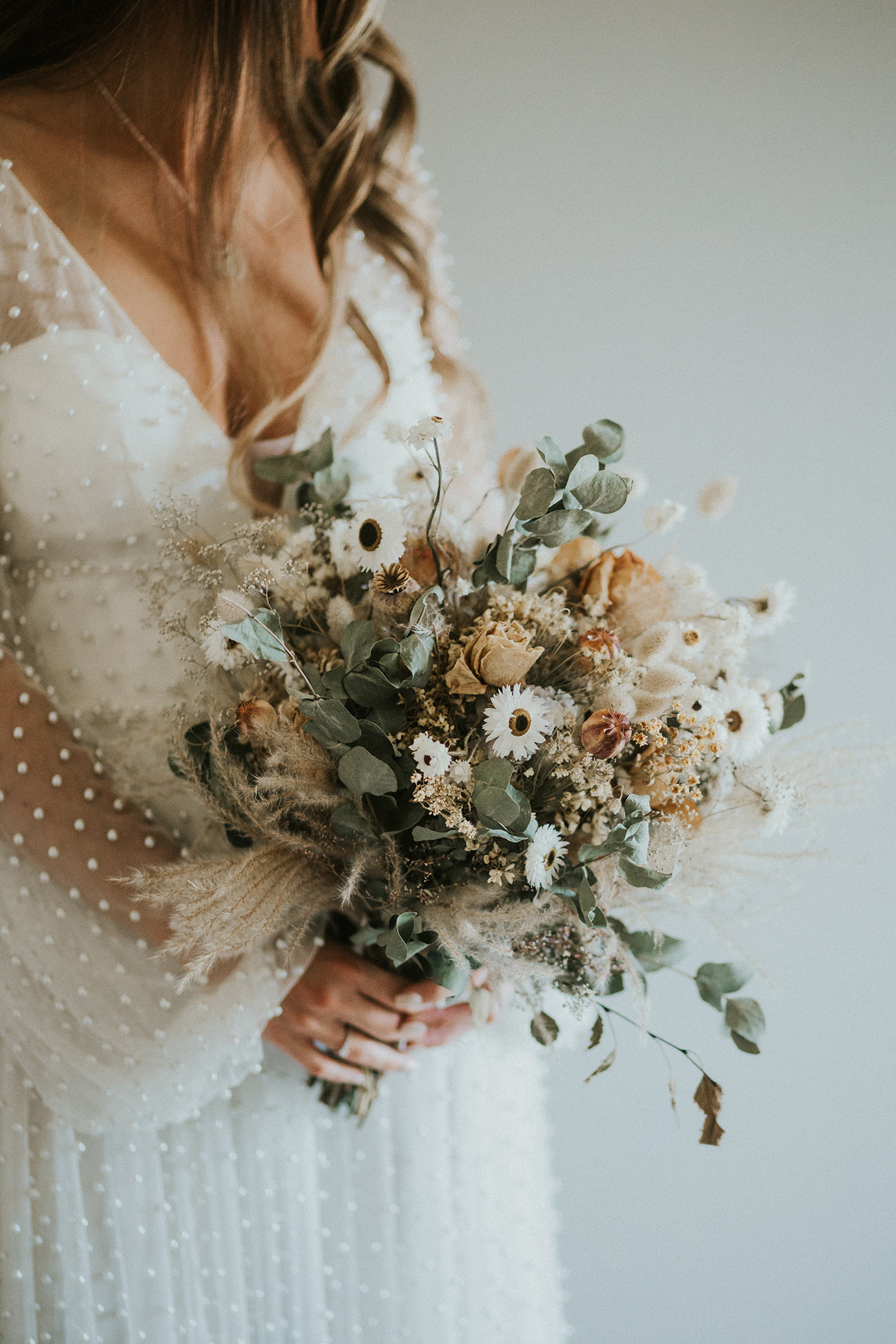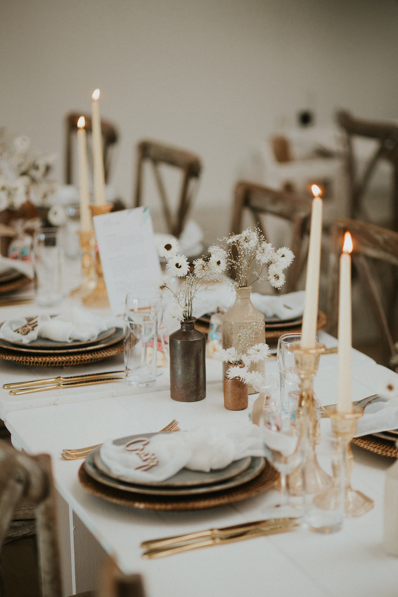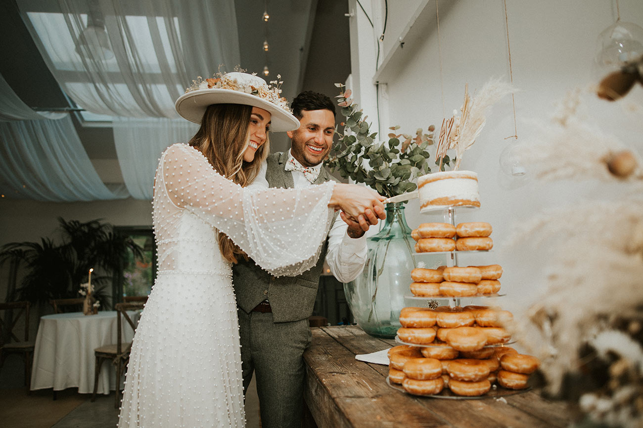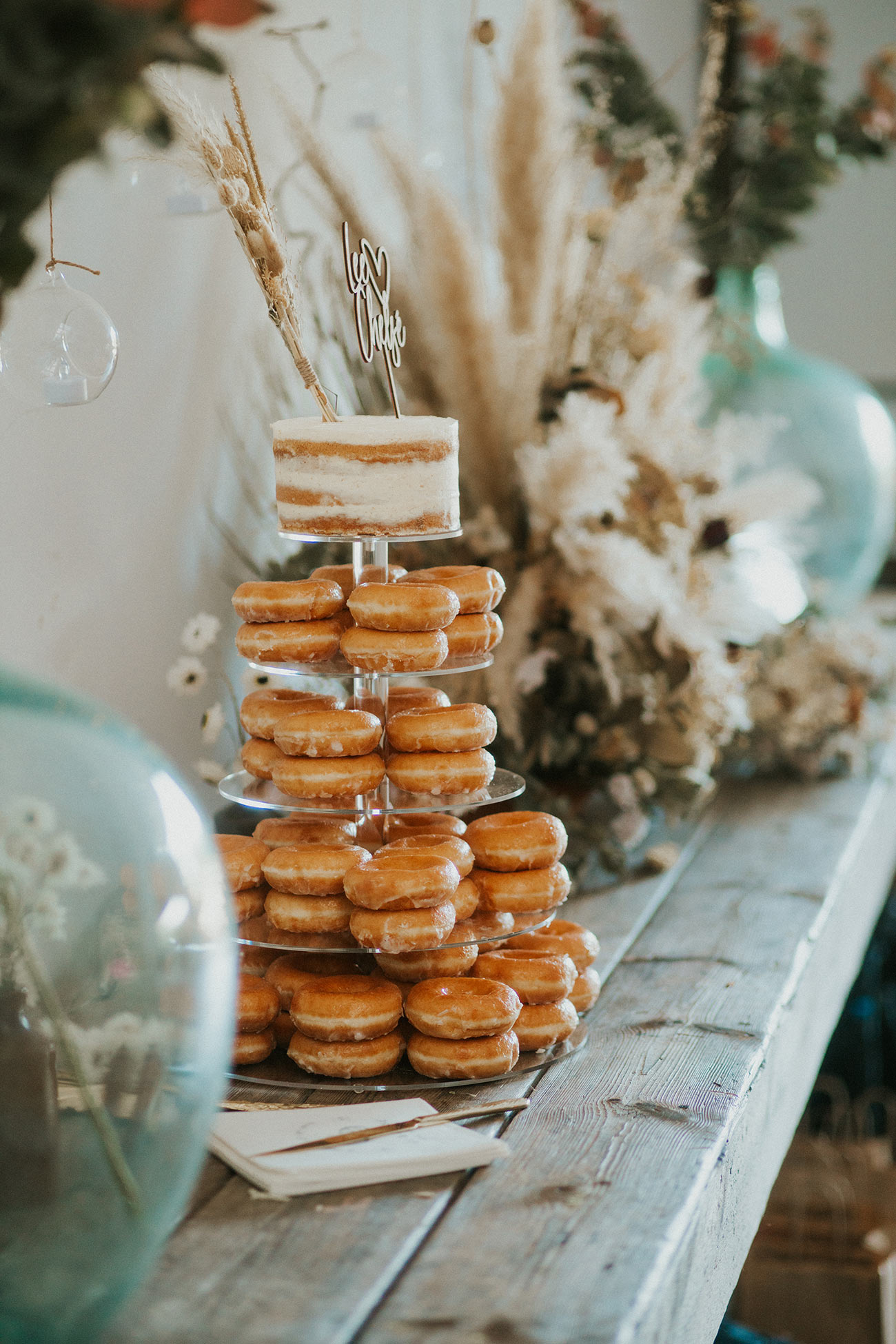 Both Chelse and Lee wanted to get married outside, deciding on the luxe countryside venue of Camel Studio. “We had a festival-style, boho garden theme, with natural colours and boho-chic style décor,” she says. “There were lots of neutrals and pampas grass, dried daises and old-style candle-holders. Lee and I opted for big peacock chairs, which made us feel ultra-special.”