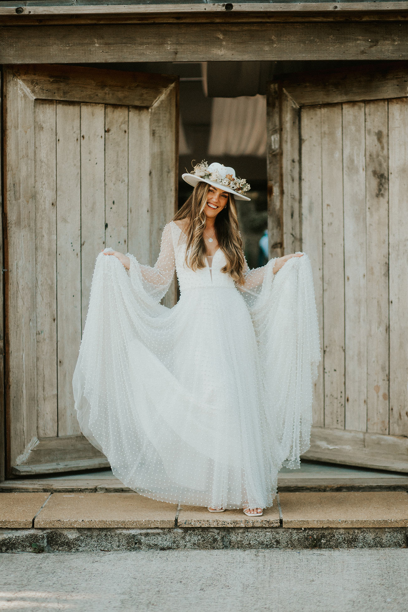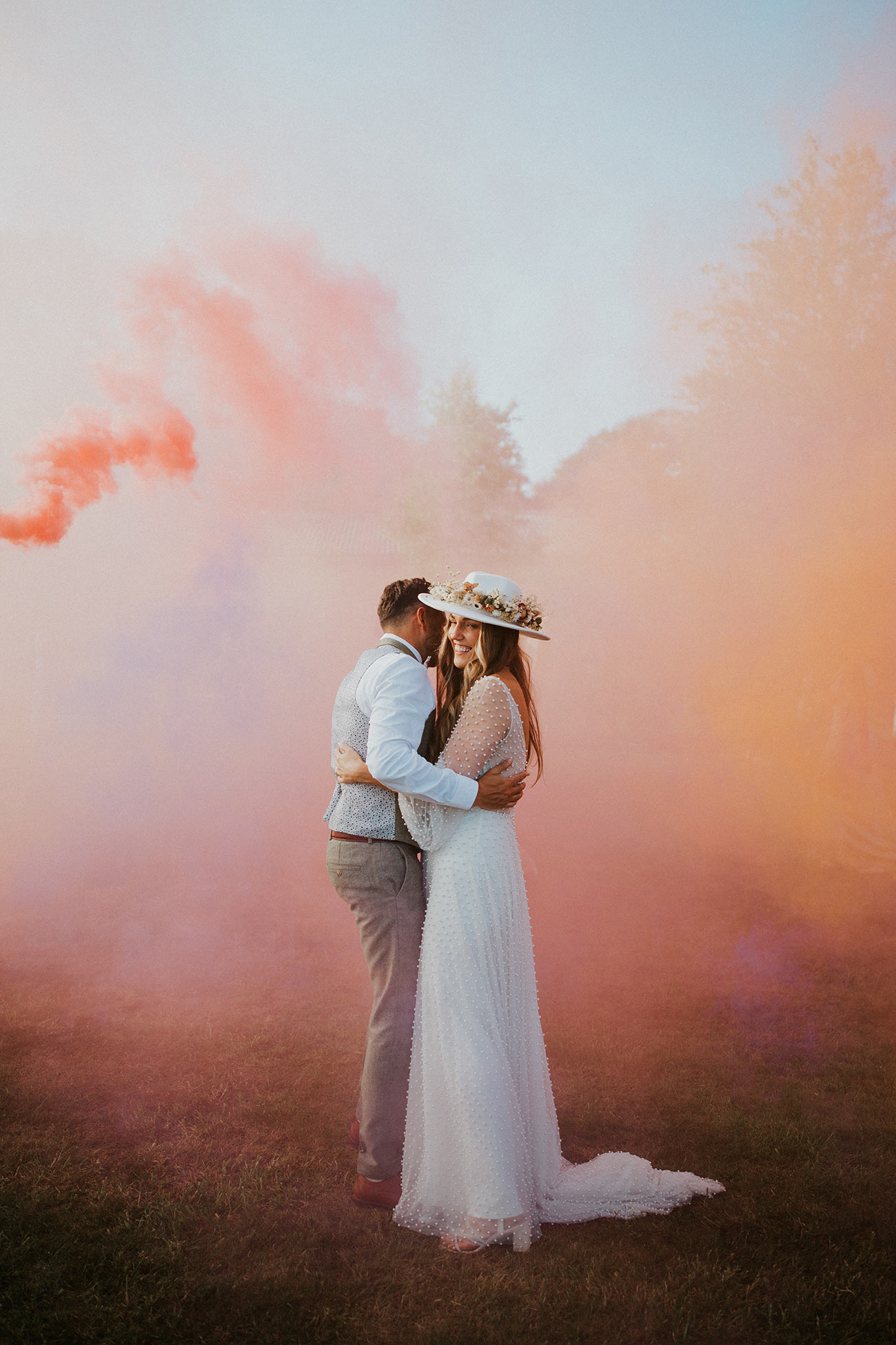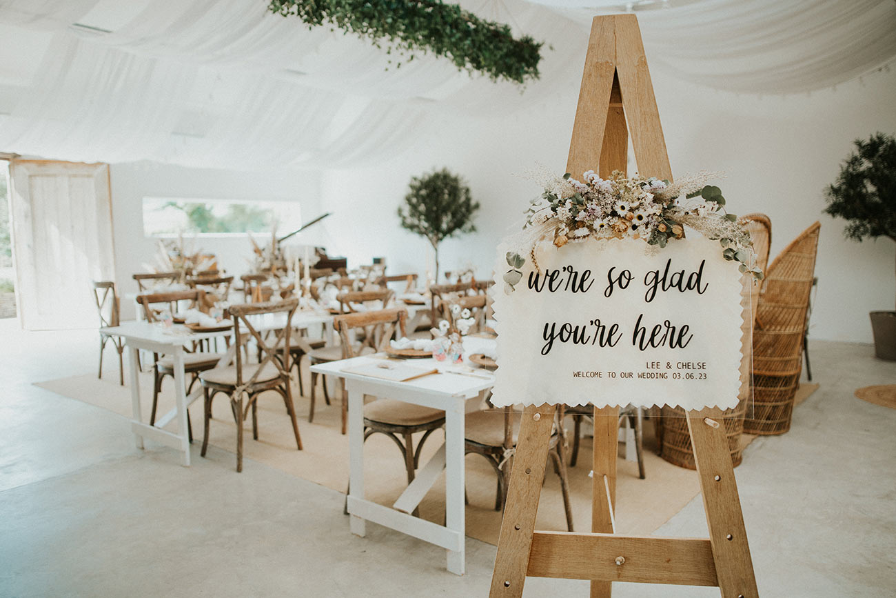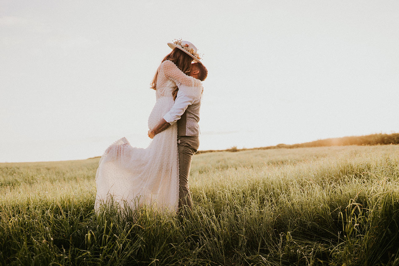 Meanwhile, Chelse and Lee were whisked away by their photographer for photos in the field next door, which proved to be one of her favourite memories of the day. “The sun was just going down and it was stunning. The colours, the peace, the warmth,” she reflects. “We could hear everyone laughing and dancing in the background. Lee and I had a special little moment together, lots of giggling and it gave us a few moments to appreciate being with each other.”