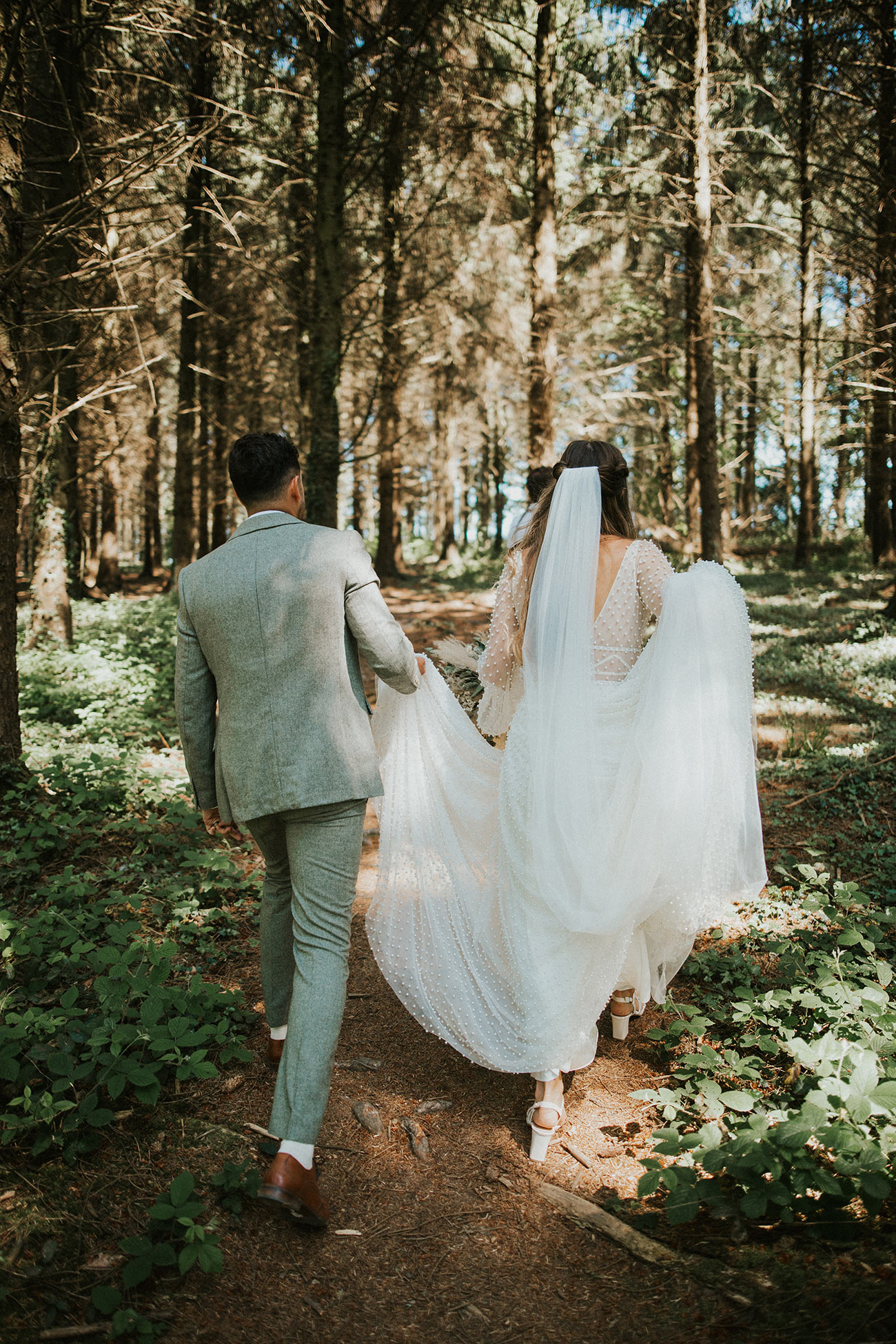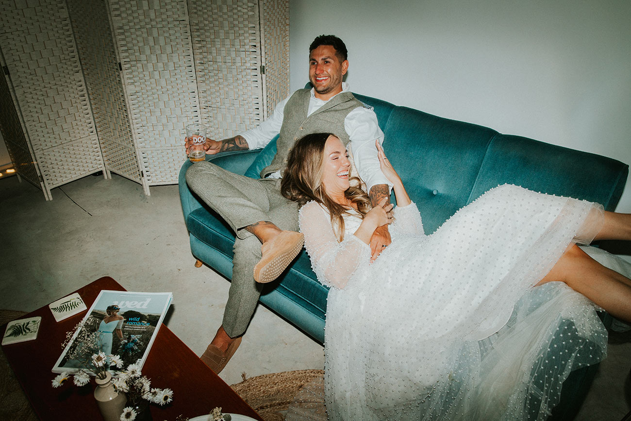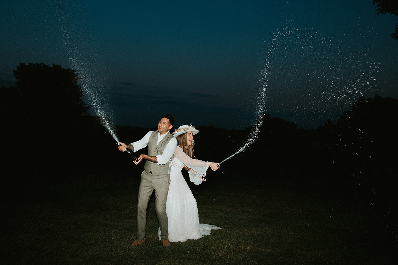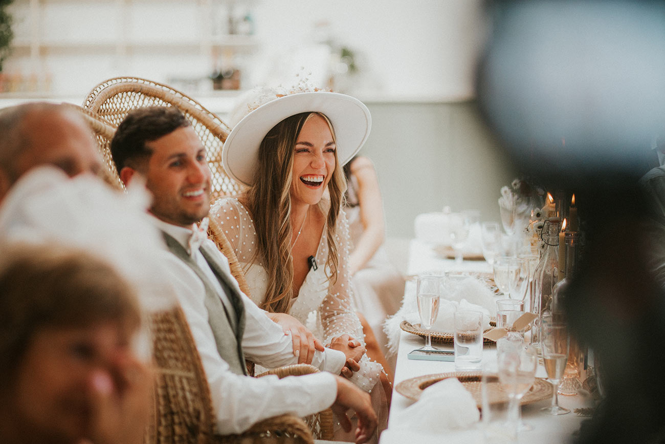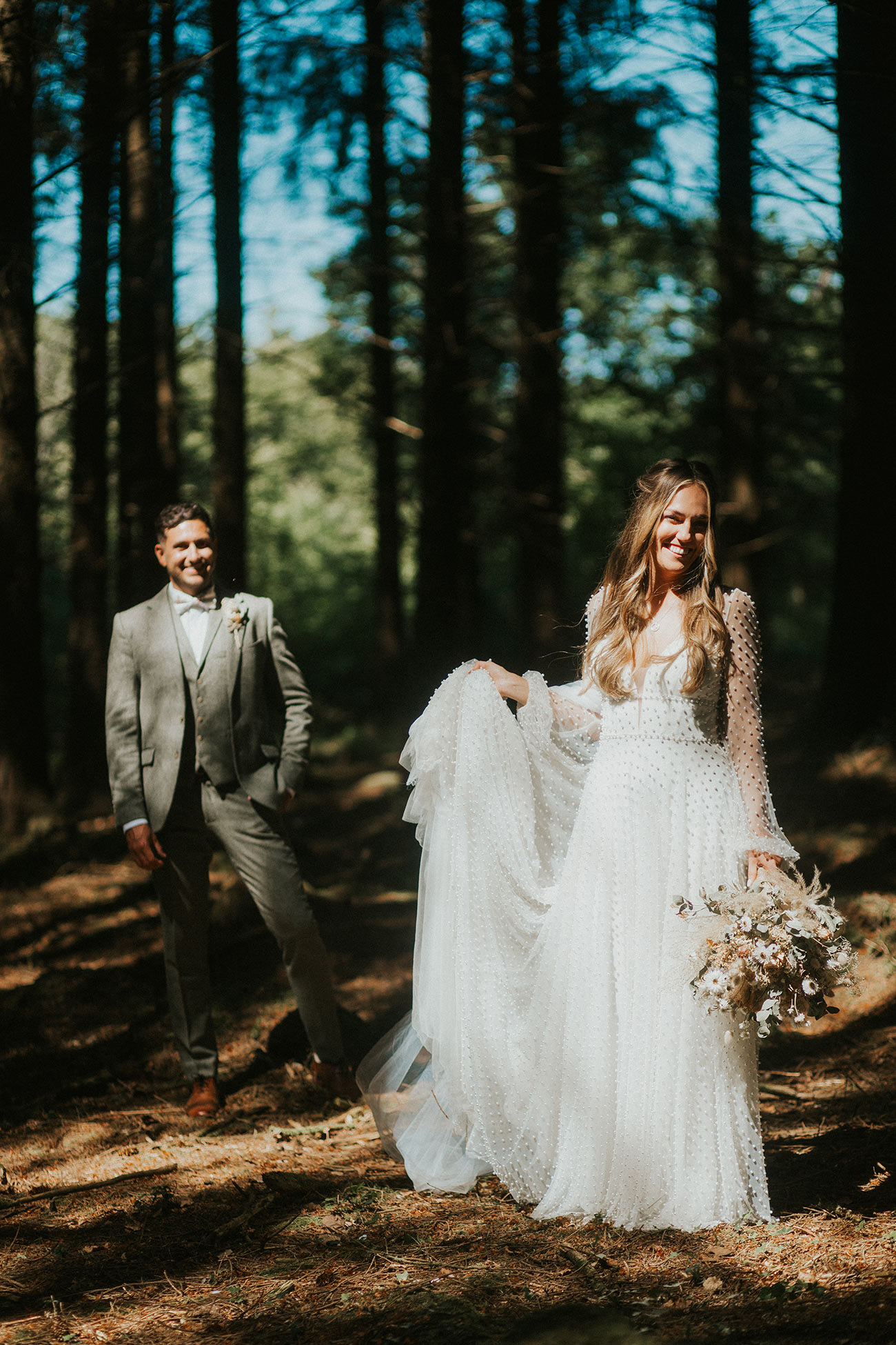 Meanwhile, Chelse and Lee were whisked away by their photographer for photos in the field next door, which proved to be one of her favourite memories of the day. “The sun was just going down and it was stunning. The colours, the peace, the warmth,” she reflects. “We could hear everyone laughing and dancing in the background. Lee and I had a special little moment together, lots of giggling and it gave us a few moments to appreciate being with each other.”