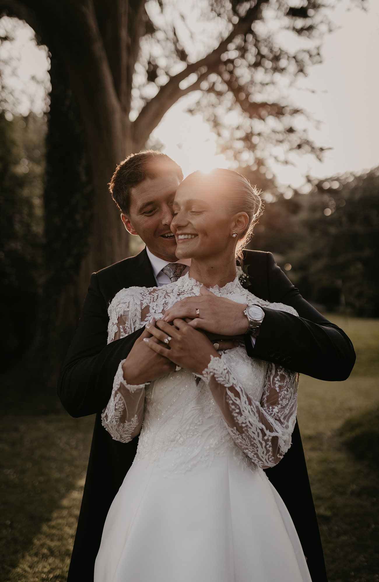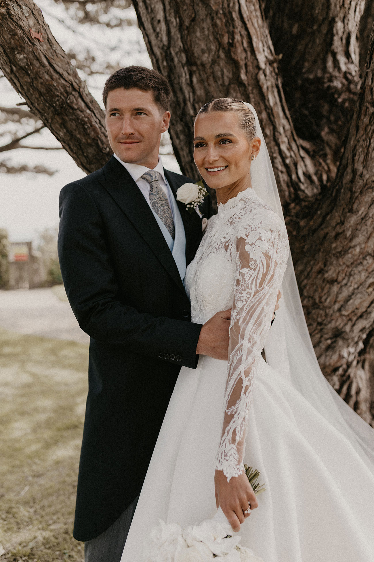 A comment by Christina on Noah’s Instagram post led to the pair – who lived in Devon and Cornwall respectively – deciding to meet for a drink in Exeter. “There was an instant connection,” says Christina. After a four-year relationship, the couple celebrated buying their first home together by taking a walk to Gribbin Head Daymark with a picnic. “When we were at the top, I peered over to spot ‘marry me’ made out of shells on the ground below,” she says. “Noah got down on one knee and presented the most beautiful ring.”