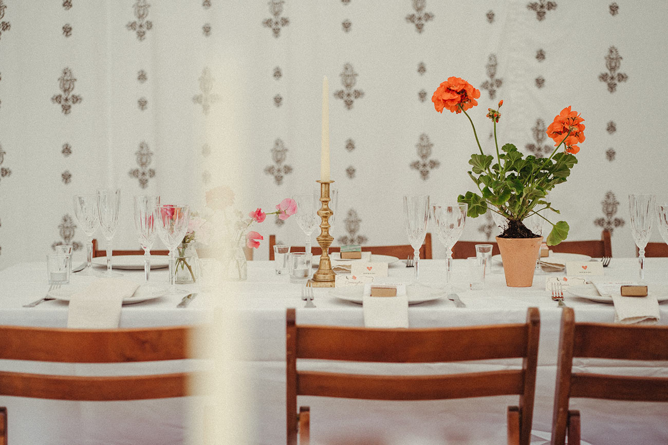 Canapés, beers and Pimm’s followed before guests gathered in the marquee for a feast of arancini with lentil ragu, orzo pasta bake and pizzas topped with vegan nduja and hot chilli honey. “Mikolaj used to be a pizza chef and couldn’t resist jumping on the pizza oven,” Holly laughs.