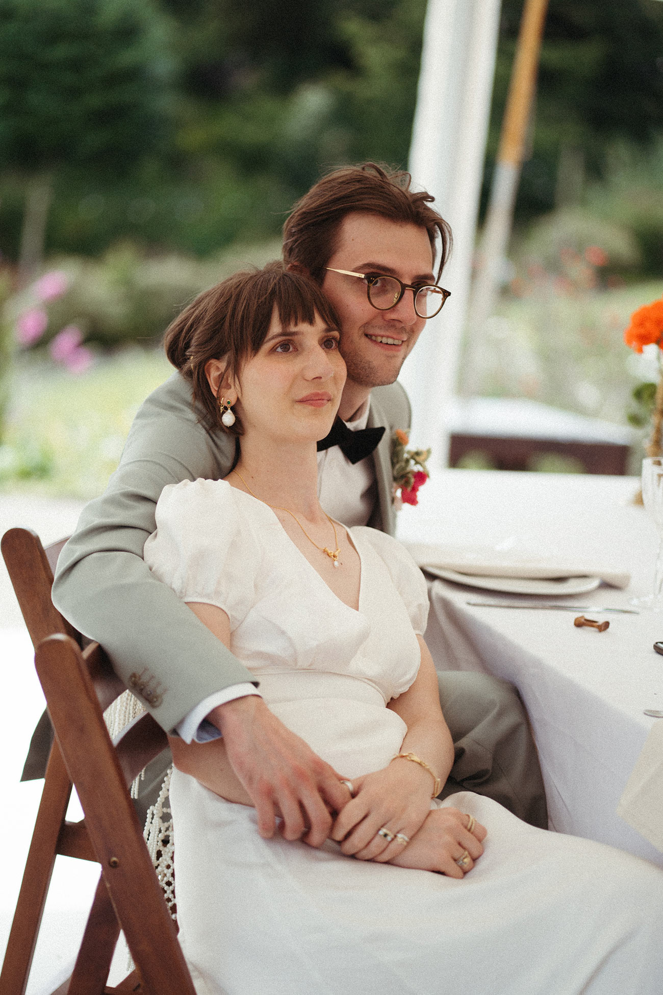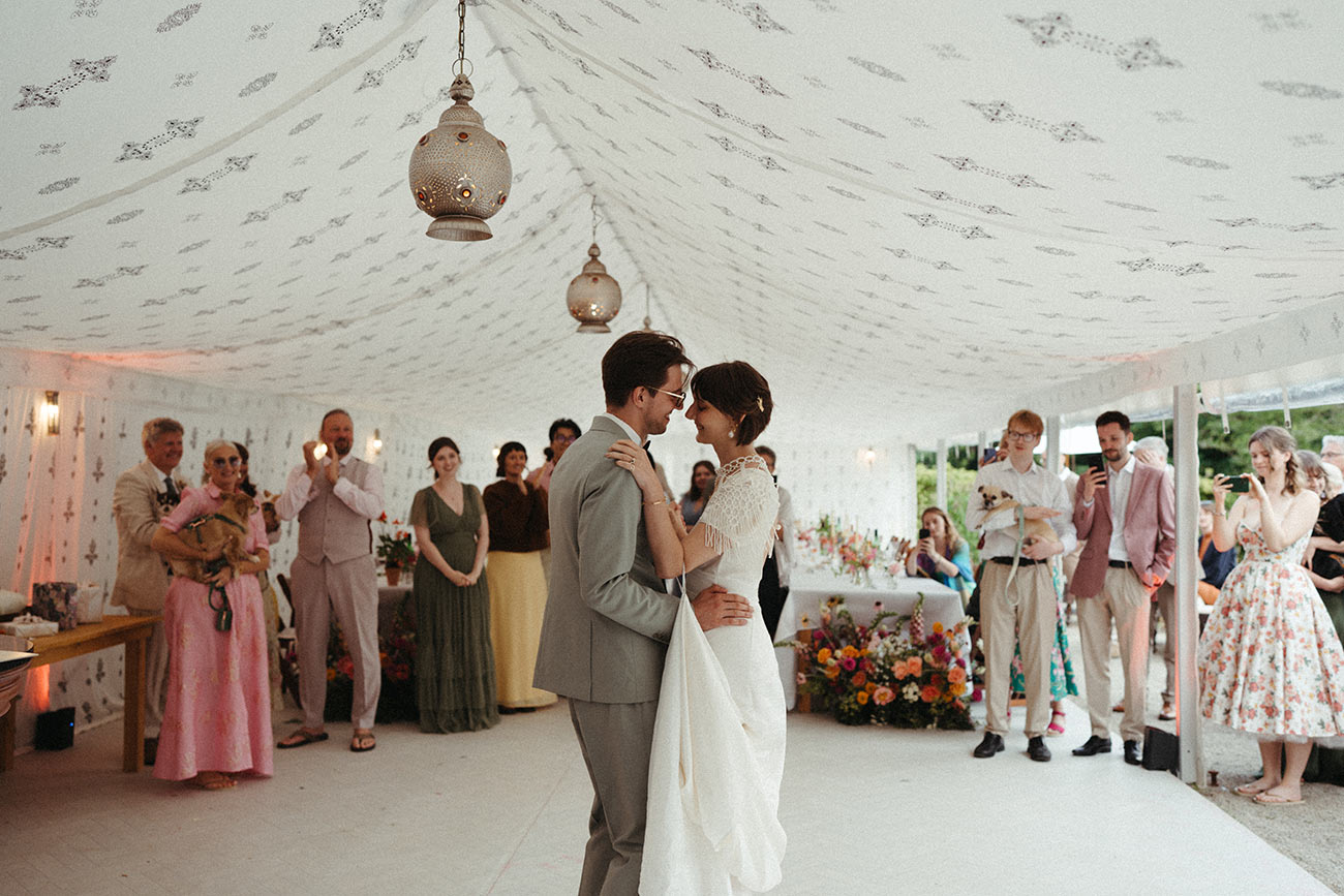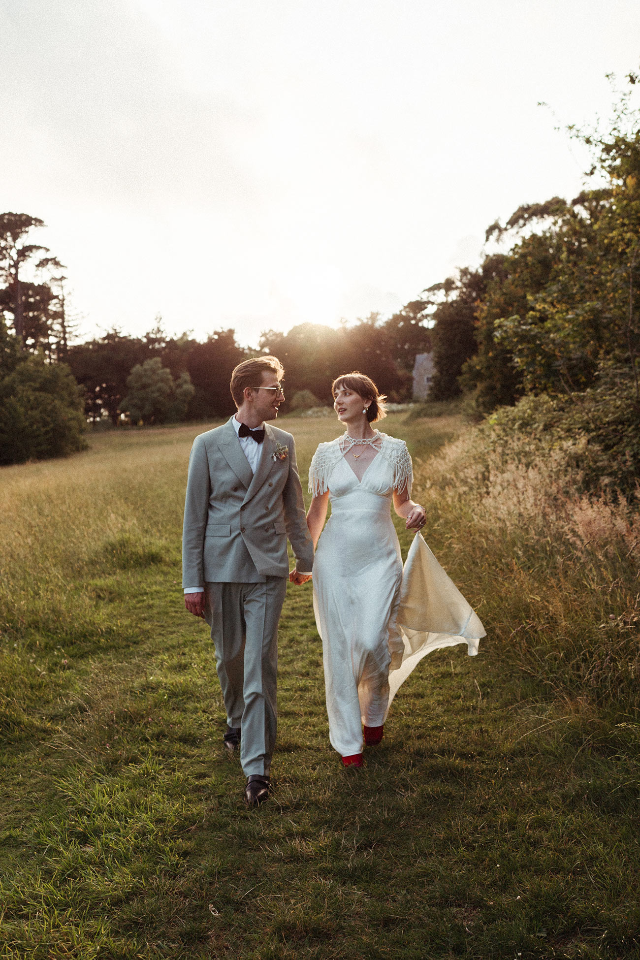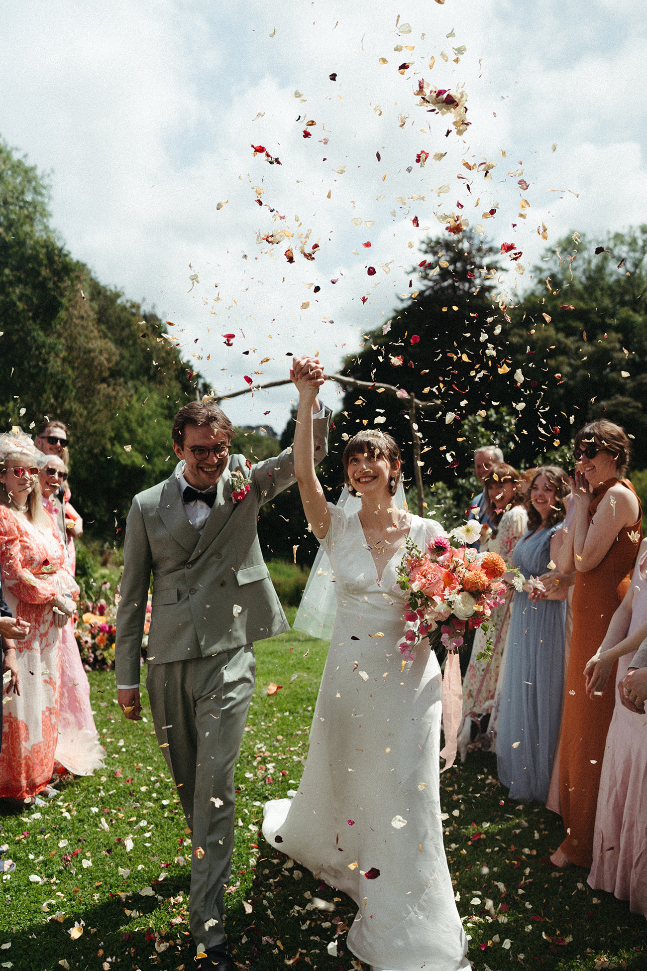Their friend Anna Dempsey officiated the ceremony, with Mikołaj’s sister translating into Polish. “Our dads were the flower boys, tossing dried petals we’d been saving all year,” says Holly. “We had quotes of advice from our grandmothers, and a moment to recognise my grandmother who passed in April. We read our vows to each other before the big kiss and walked back down the aisle under a shower of confetti.”