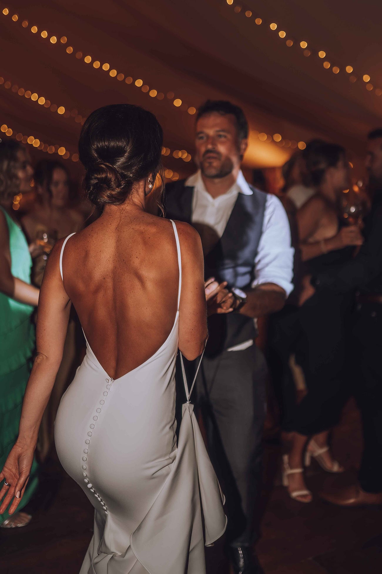A live band played an acoustic set and evening guests started arriving as Emily changed into her second dress of the day. The dance floor opened with the couple’s first dance to Toploader’s Dancing in the Moonlight, and the guests kept the floor buzzing until midnight.