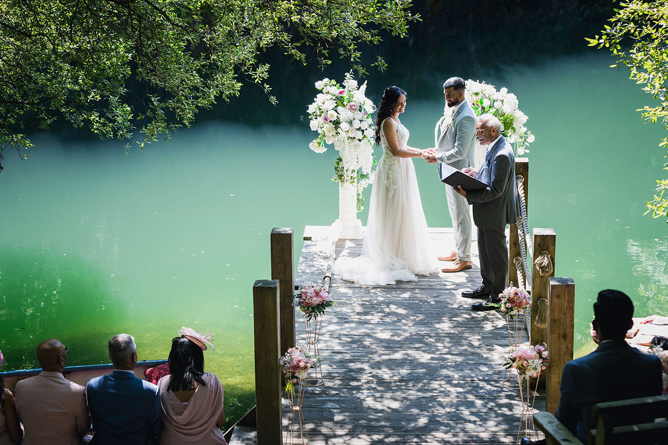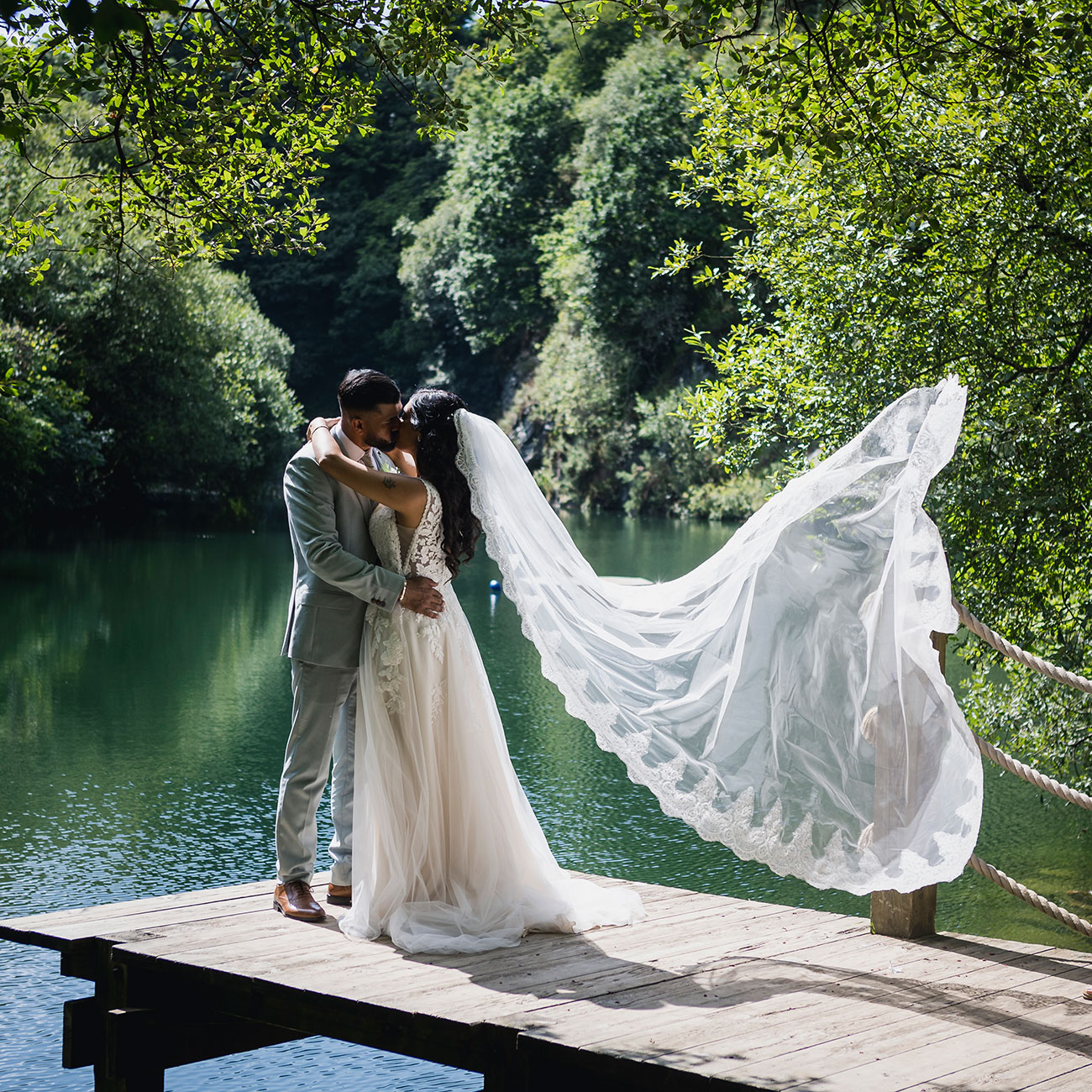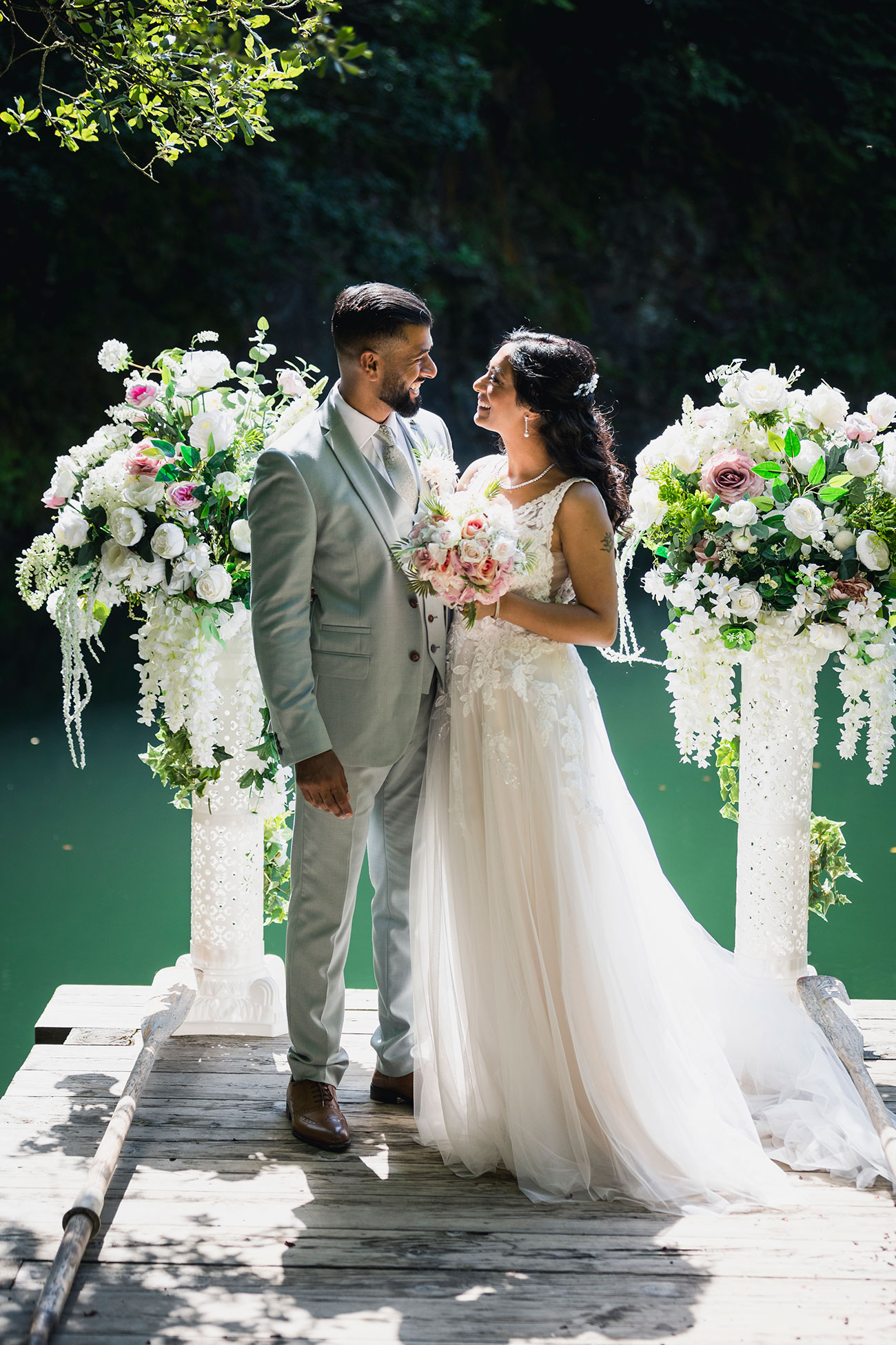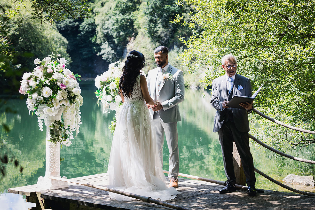 Embracing the waterside setting of their proposal, Sneha and Chirag planned an intimate civil ceremony by the lake at Cornish Tipi Weddings, following their traditional Indian wedding in Italy. “We always wanted to get married near water – it was almost impossible to believe this setting existed in the UK. We had our hearts set on getting married there,” says Chirag.