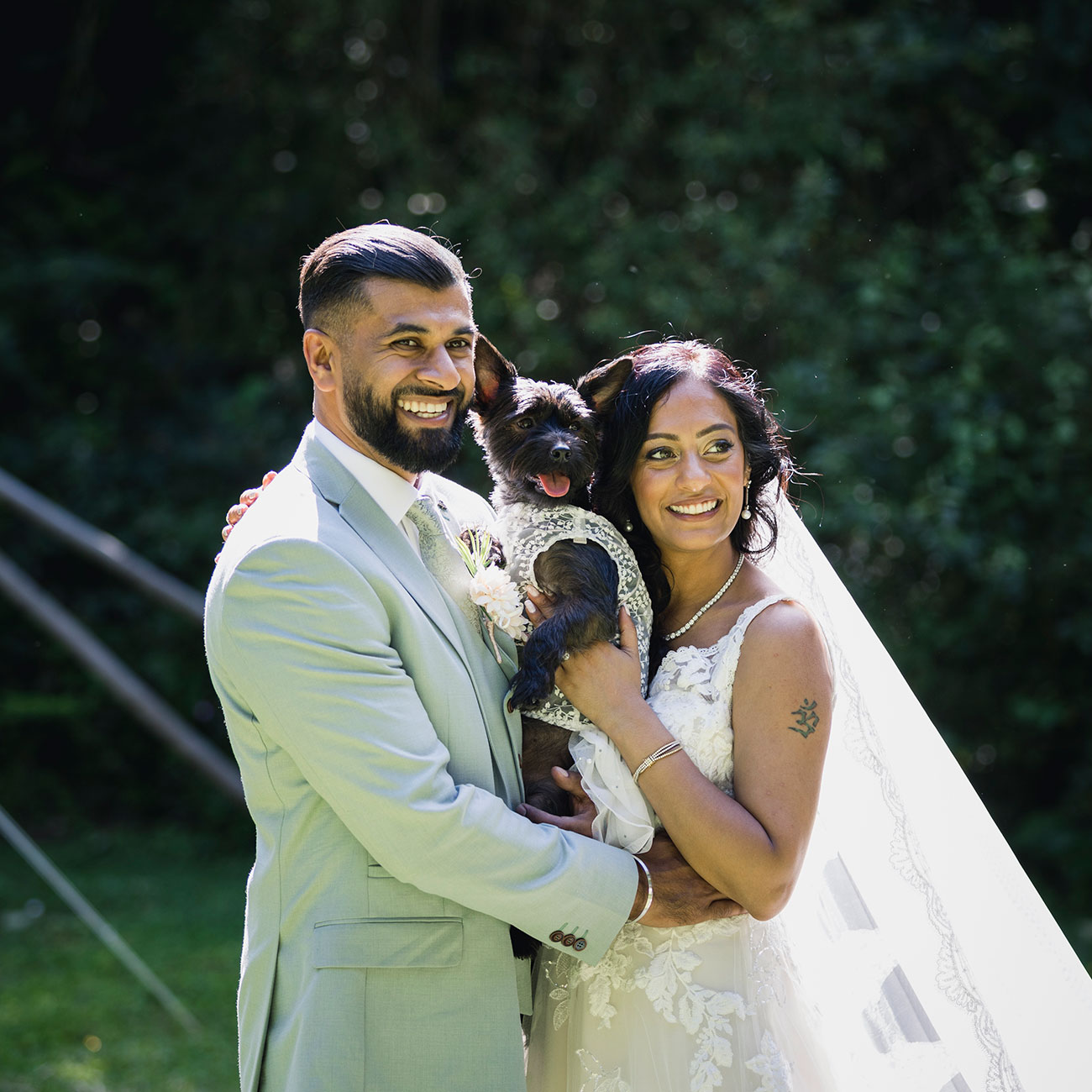 Their beloved dog, Cinnamon, was the ring-bearer, adding an adorable and personal element to the day. “The ceremony was so full of love. All we remember is constantly smiling,” say the couple. “We don’t get to share personal vows at an Indian wedding so writing the vows and commitments to one another was a particular special moment for us.”