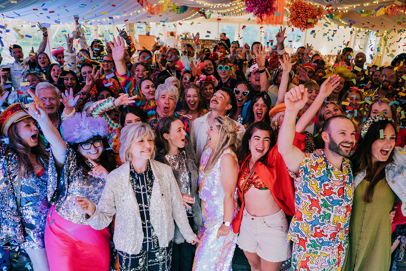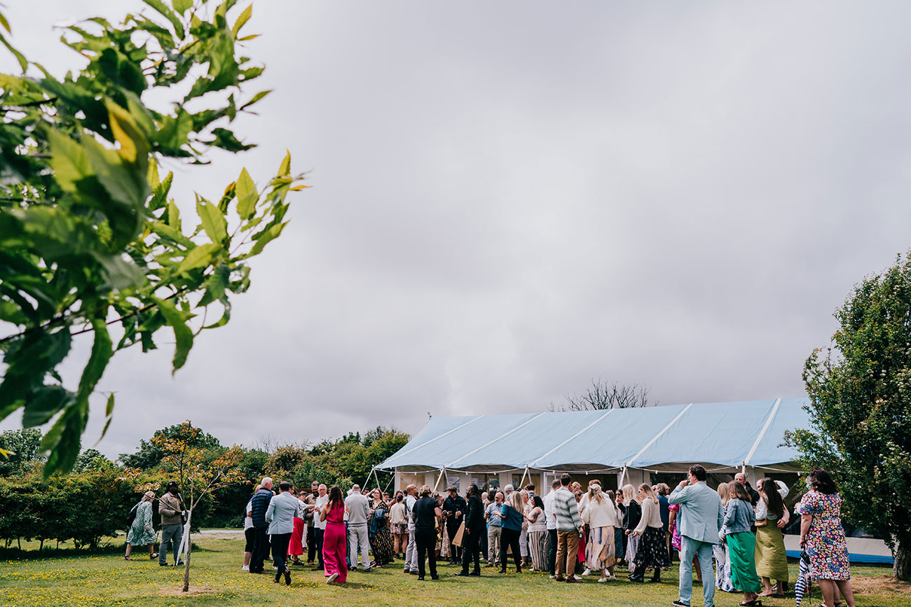 Dinner was a barbecue feast, followed by a crumble bar where guests built their own desserts. And instead of a traditional first dance, the couple called everyone onto the for a group photo as the band launched into Outkast's Hey Ya with confetti cannons exploding overhead. The celebrations continued late into the night with drinks by the firepit, music and s’mores. With a three-night stay, the party didn’t stop there – welcome pizzas, a Polzeath beach day and volleyball back at the tipis made it a true wedding weekend.