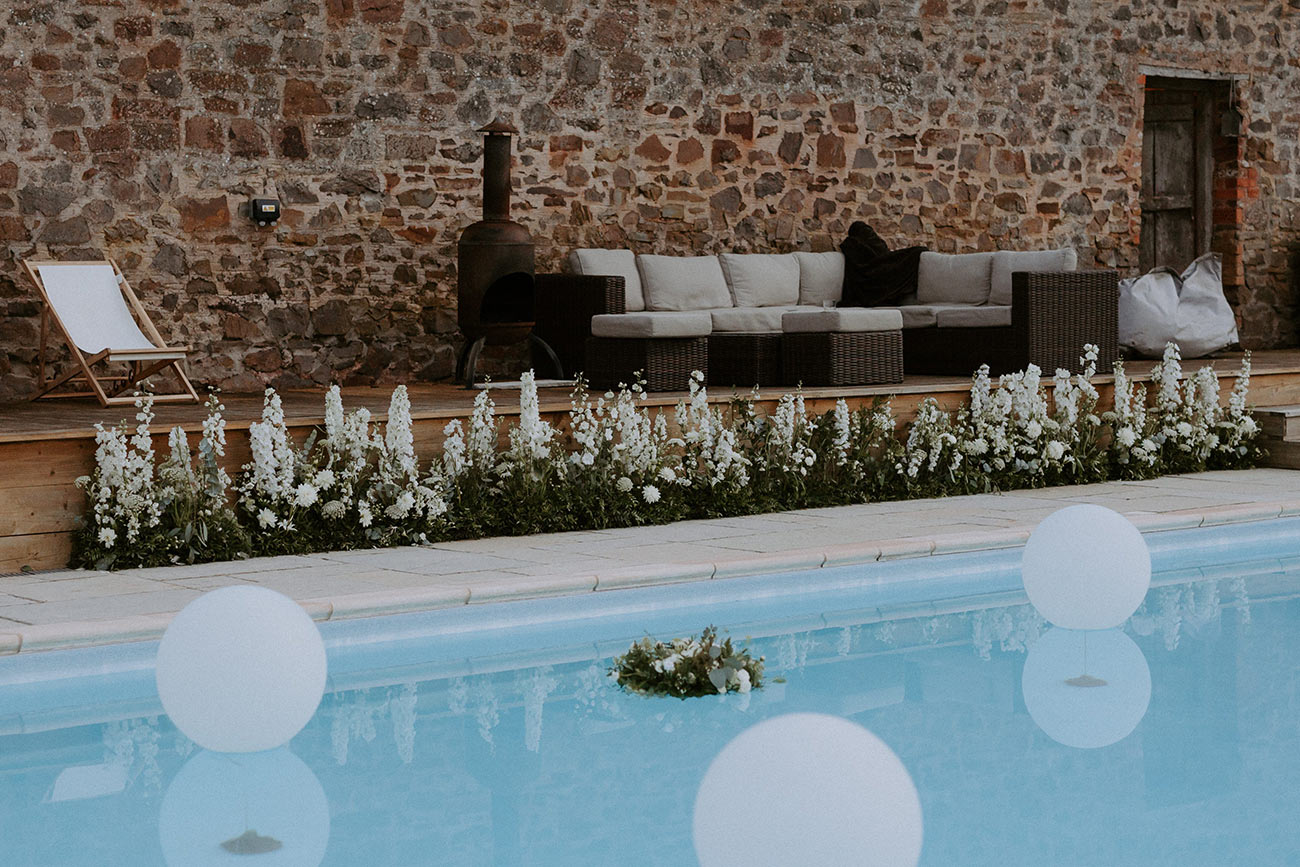“We wanted everything to look very natural and ‘us’,” explains Milly. “I made the bespoke jewellery, including our wedding bands that were made from an old bracelet of my mum’s that we melted down. My earrings were hoops with salt and pepper diamonds set in the pebbles.”
