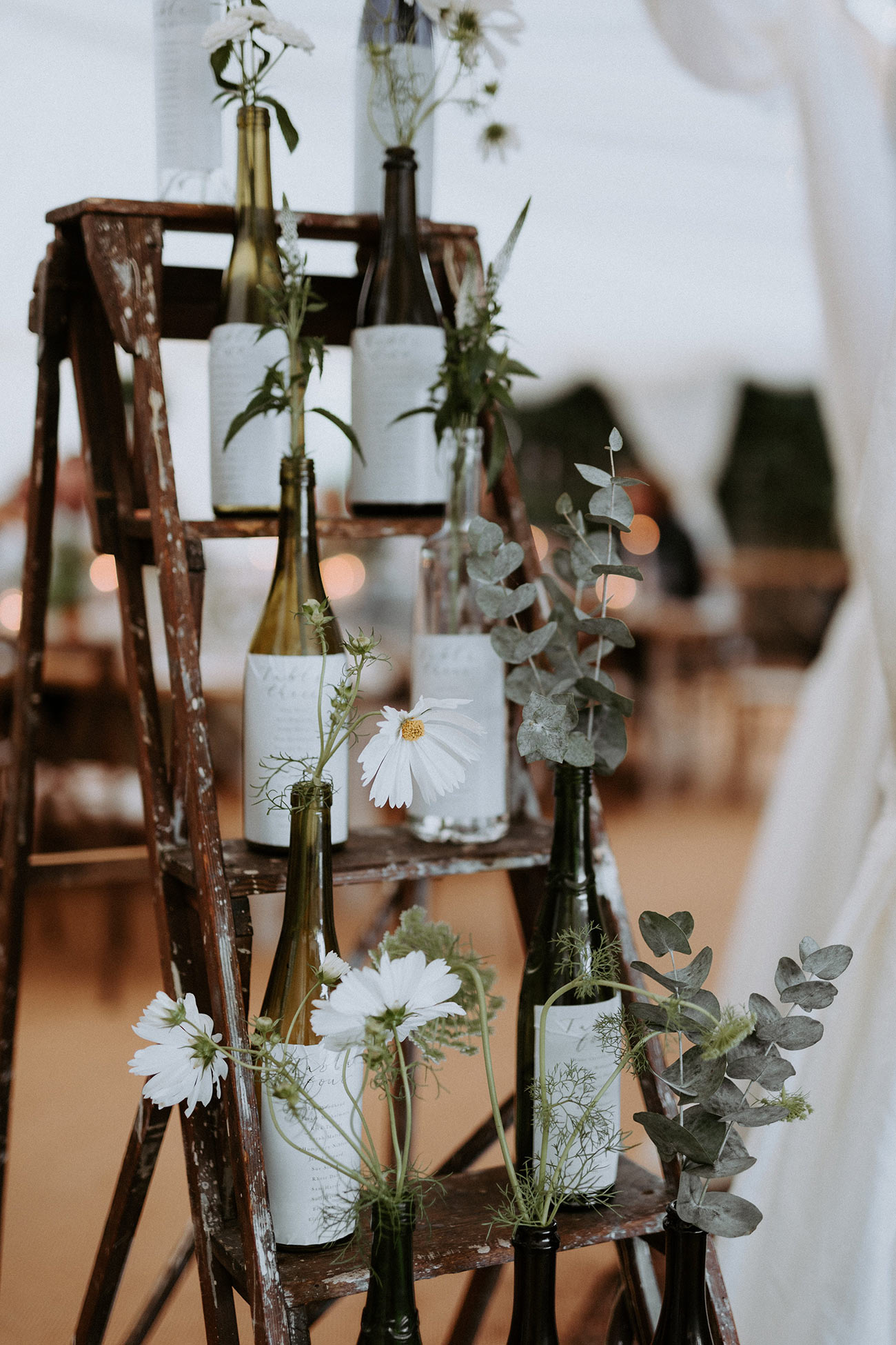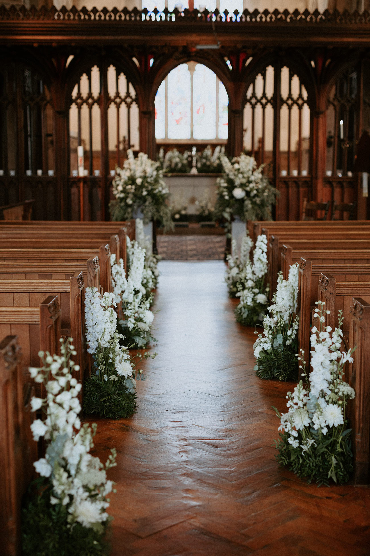 A marquee reception at Milly’s parents’ house followed. “We arrived five minutes before everyone else, which I would really recommend, as it gave us a chance to breathe and chat about the service,” she says. Rather than adopting a specific style, the couple selected a series of handmade elements for a personalised feel together with beautiful arrangements of crisp white florals and foliage.