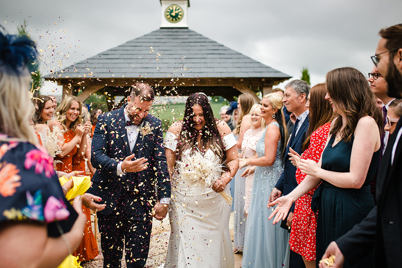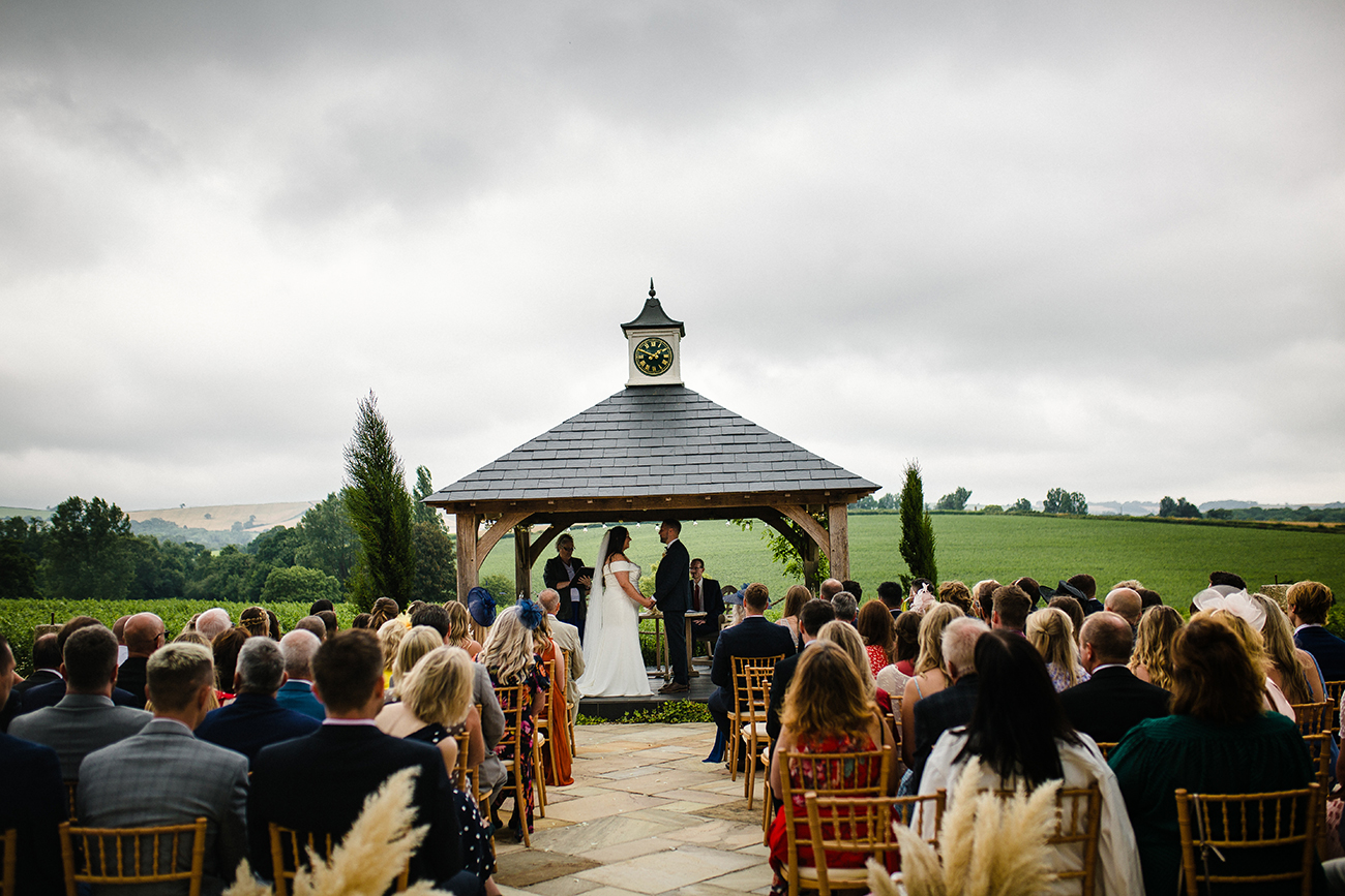After the outdoor ceremony, where the couple took their vows before views across rolling meadows, the festivities kicked off in style with sangria, games and live music from Emma Pick.