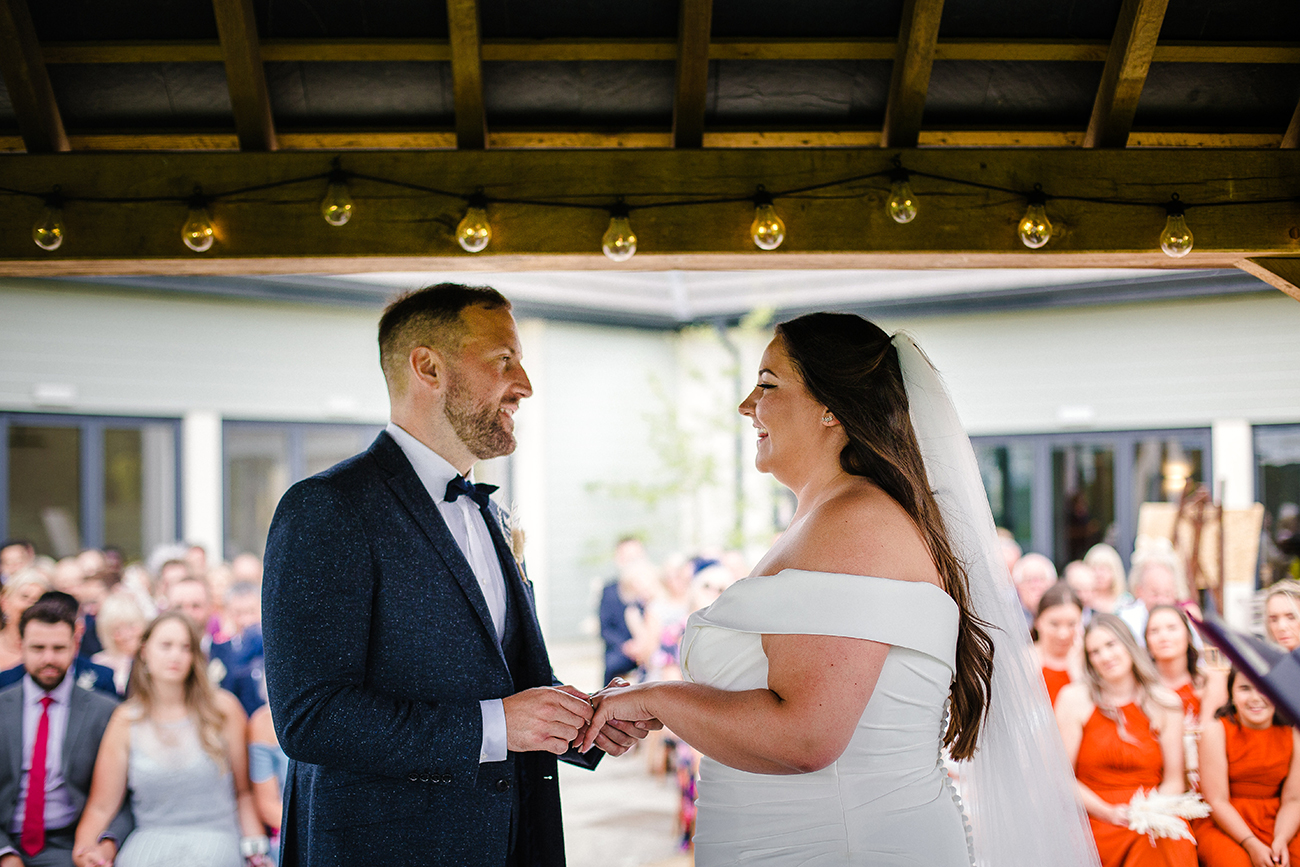 Engagement celebrations over, the couple set about finding a venue for their vision of a “relaxed, rustic but people orientated wedding” – and Harefield Barn was the perfect fit. “One of our best decisions was that we chose to host our wedding at the very beautiful Harefield Barn,” says Ruth. “We loved the idea of DIY wedding where we could bring in suppliers who would fit our day, and the owners, Deborah and Robert, were so welcoming and helpful that we knew it was a good match!”