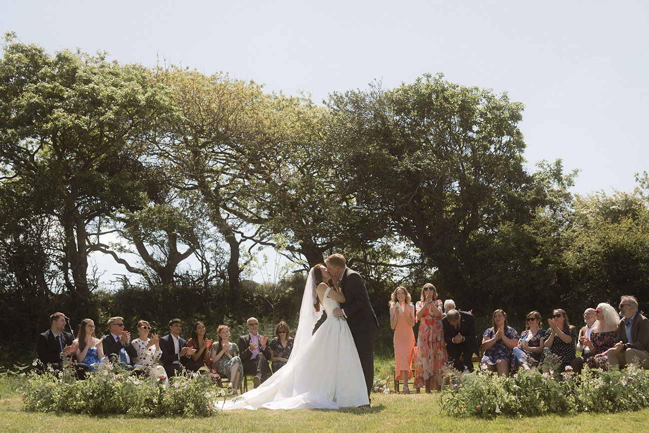 The al fresco ceremony overlooked rolling Cornish countryside. “It was very us. No poems or songs – I walked up the hill to Jack instead of down the aisle, and it was magical with the views in the background.” All their siblings had a role, and even their dog, Ellie, joined in the celebrations, scattering confetti along the way. “It wasn't a long ceremony, but really special one – like a dream,” says Amelia. “Everyone walked down before us, so we got to hug them and hand out confetti. It was an amazing way to say hello to everyone and share the love.”