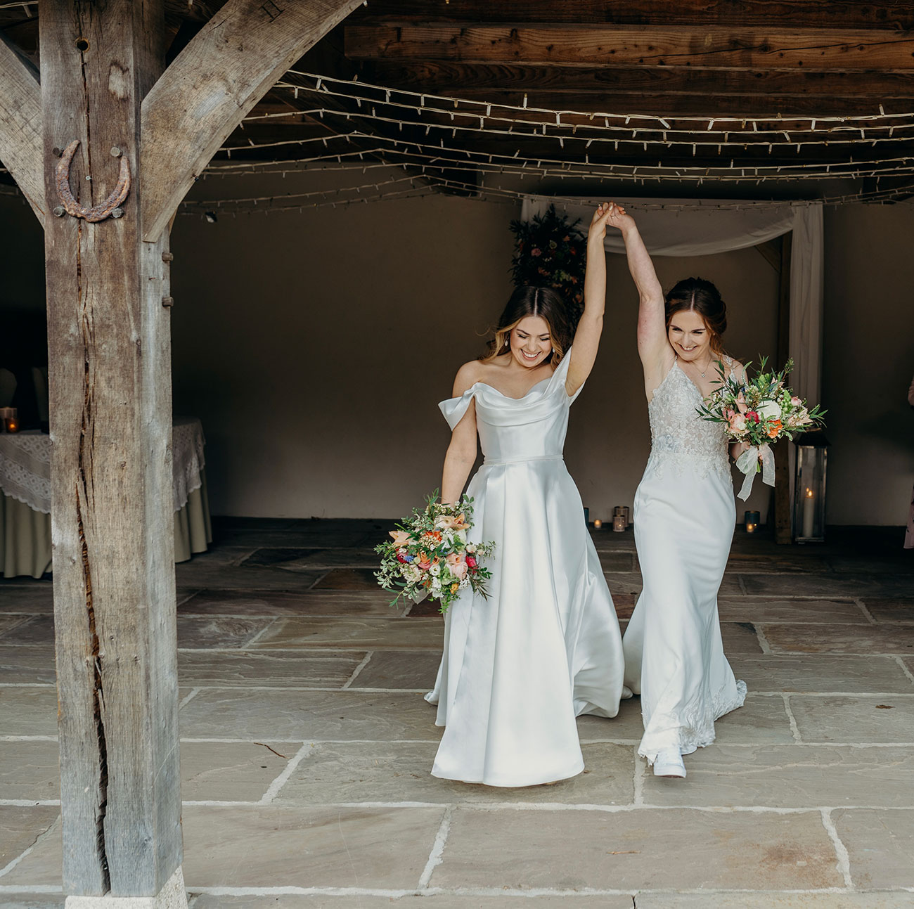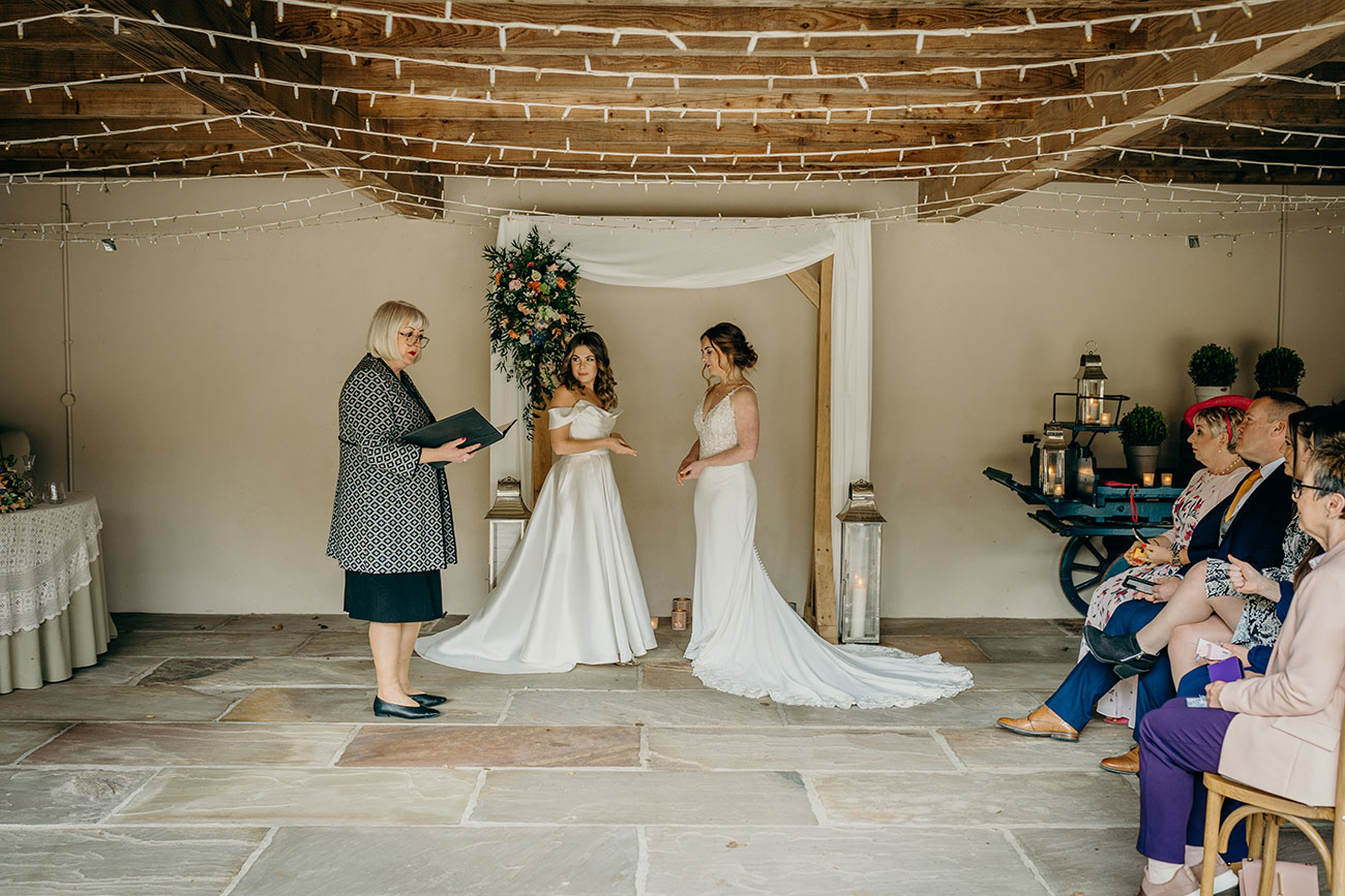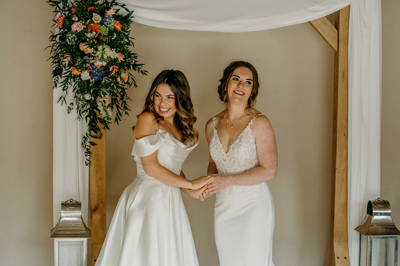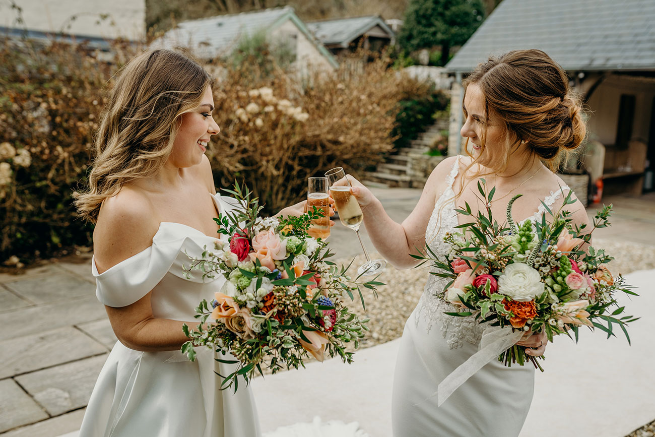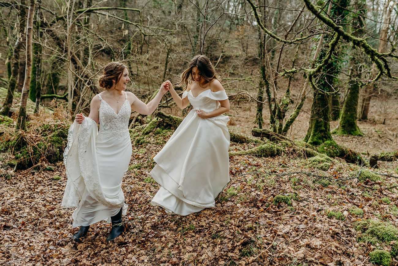 Shopping for their dresses separately, the couple kept their choices a surprise from each other until their ‘first look’. Emotions ran high during the ceremony, which included a moving Celtic poem, before the newlyweds took a stroll through the picturesque grounds for photos. “Lydia pulling out miniature bottles of prosecco from the (giant) pockets of her wedding dress during our photos was one of my favourite moments of the day!” laughs Megan.