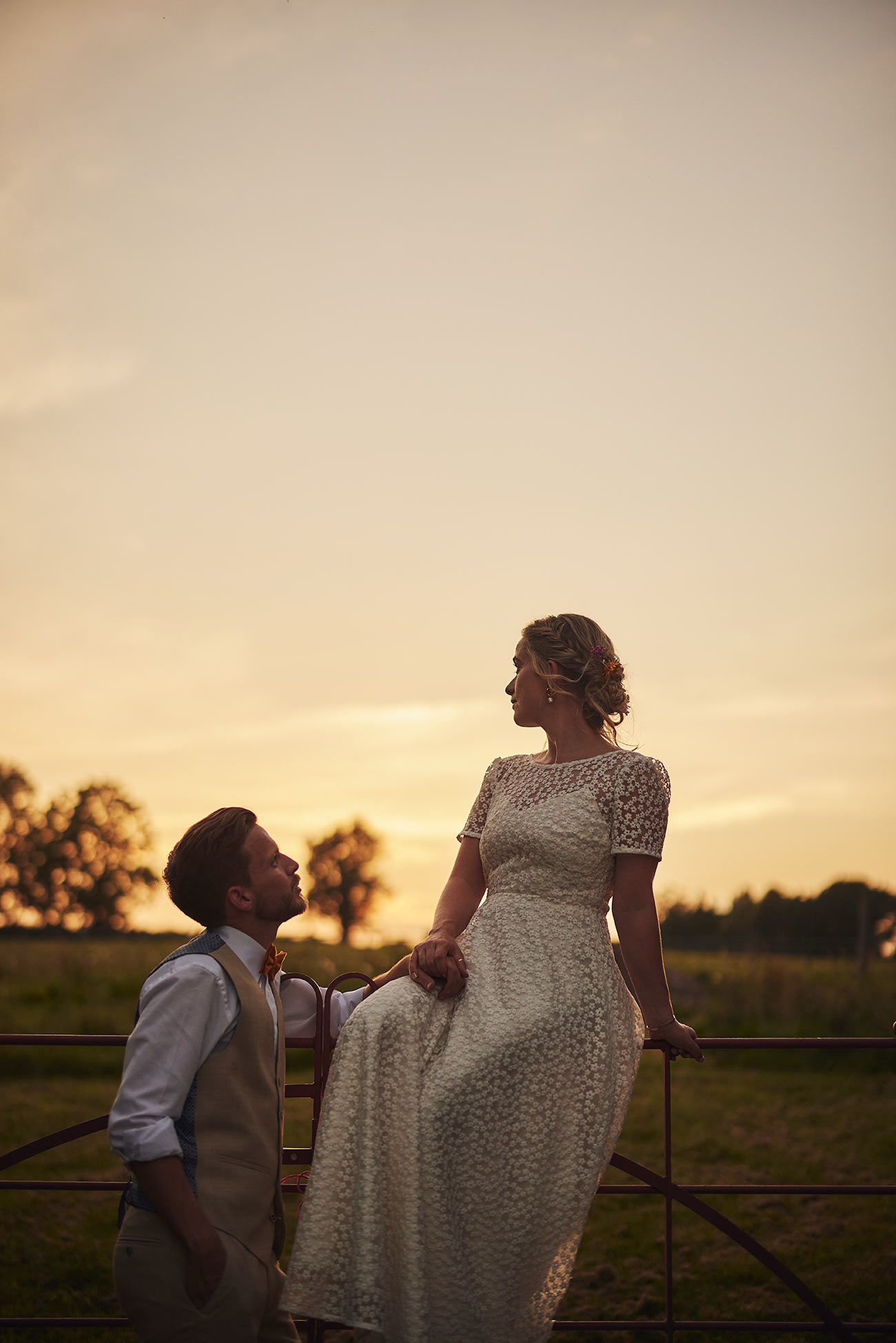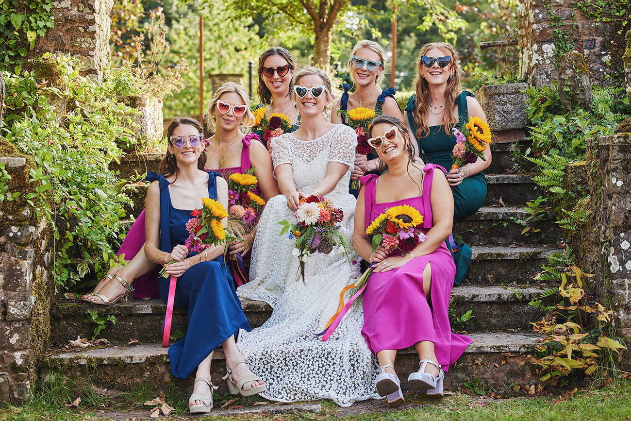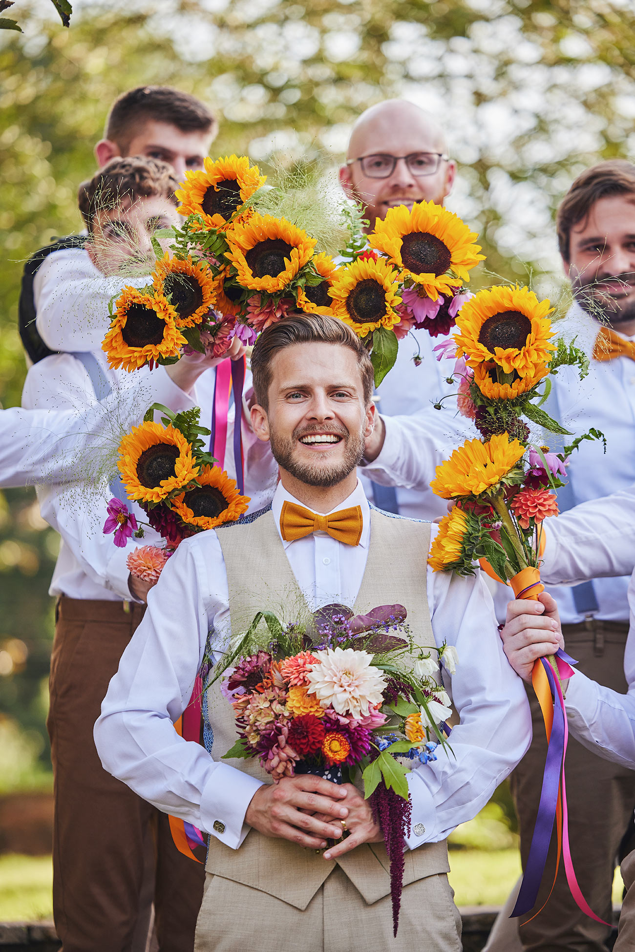 Hayne Devon was the idyllic setting for their colourful country wedding, which blended a variety of themes from The Lord of the Rings to “our love of the mountains, camping, travel and other people’s weddings we had been to!”. Vibrant displays of homegrown wildflowers were paired with handmade and secondhand décor to create a fun, personal and sustainable scene full of unique character. “This was exactly the sustainable country vibe we were after,” comments Ellie.