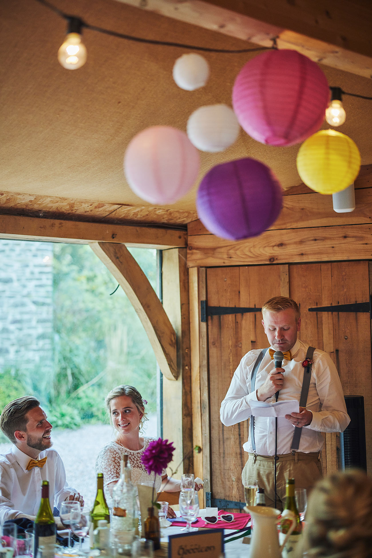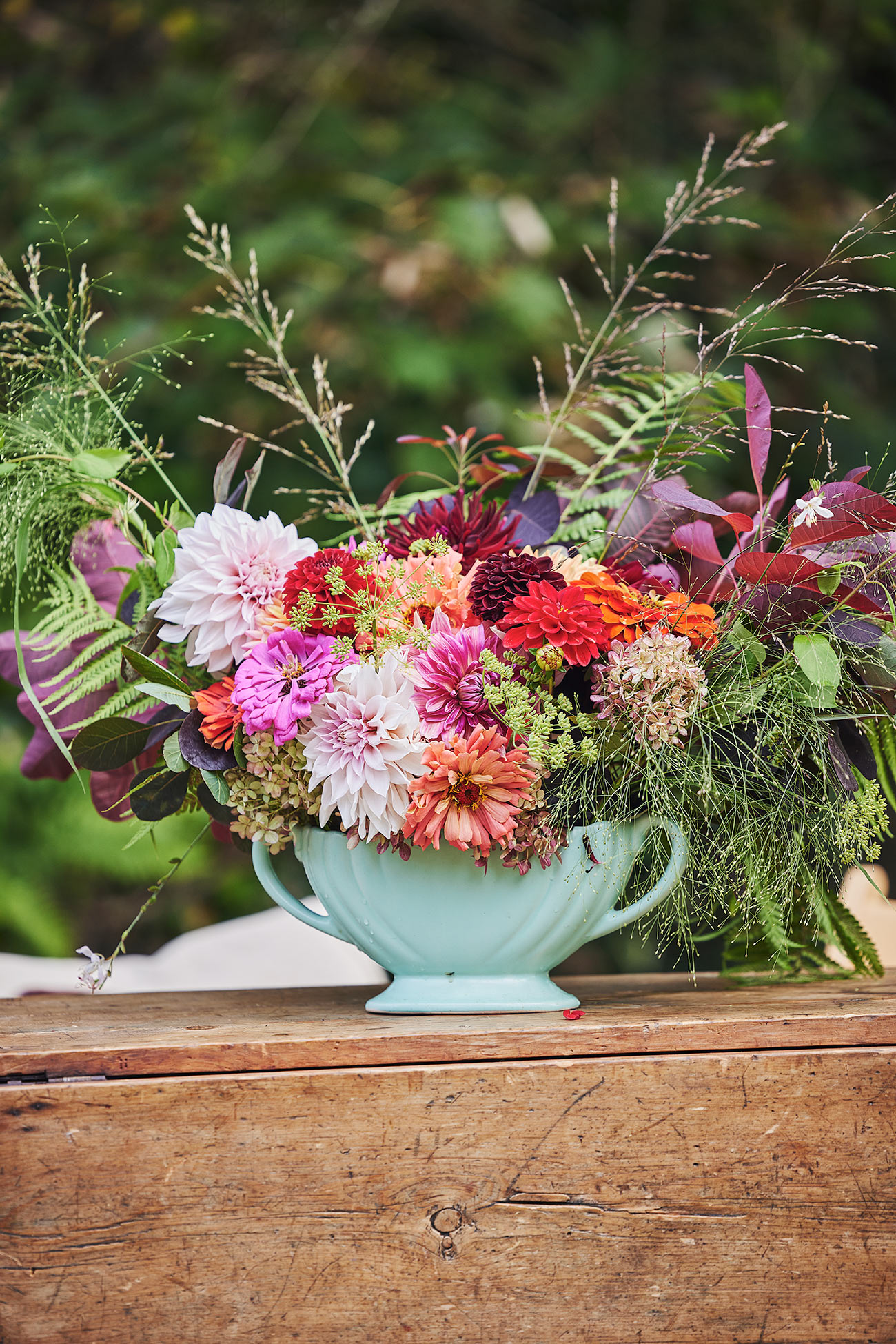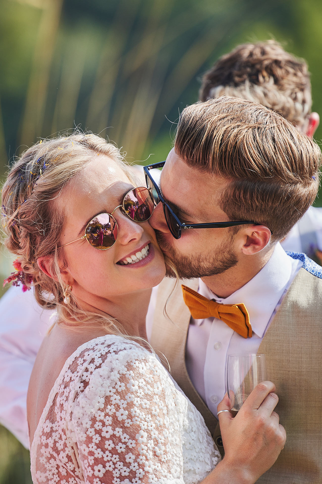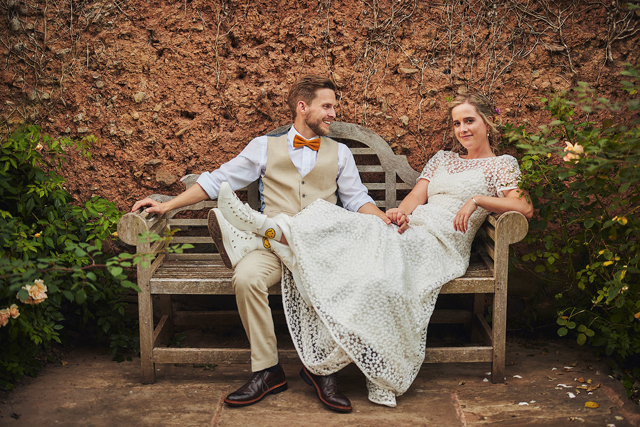 Hayne Devon was the idyllic setting for their colourful country wedding, which blended a variety of themes from The Lord of the Rings to “our love of the mountains, camping, travel and other people’s weddings we had been to!”. Vibrant displays of homegrown wildflowers were paired with handmade and secondhand décor to create a fun, personal and sustainable scene full of unique character. “This was exactly the sustainable country vibe we were after,” comments Ellie.