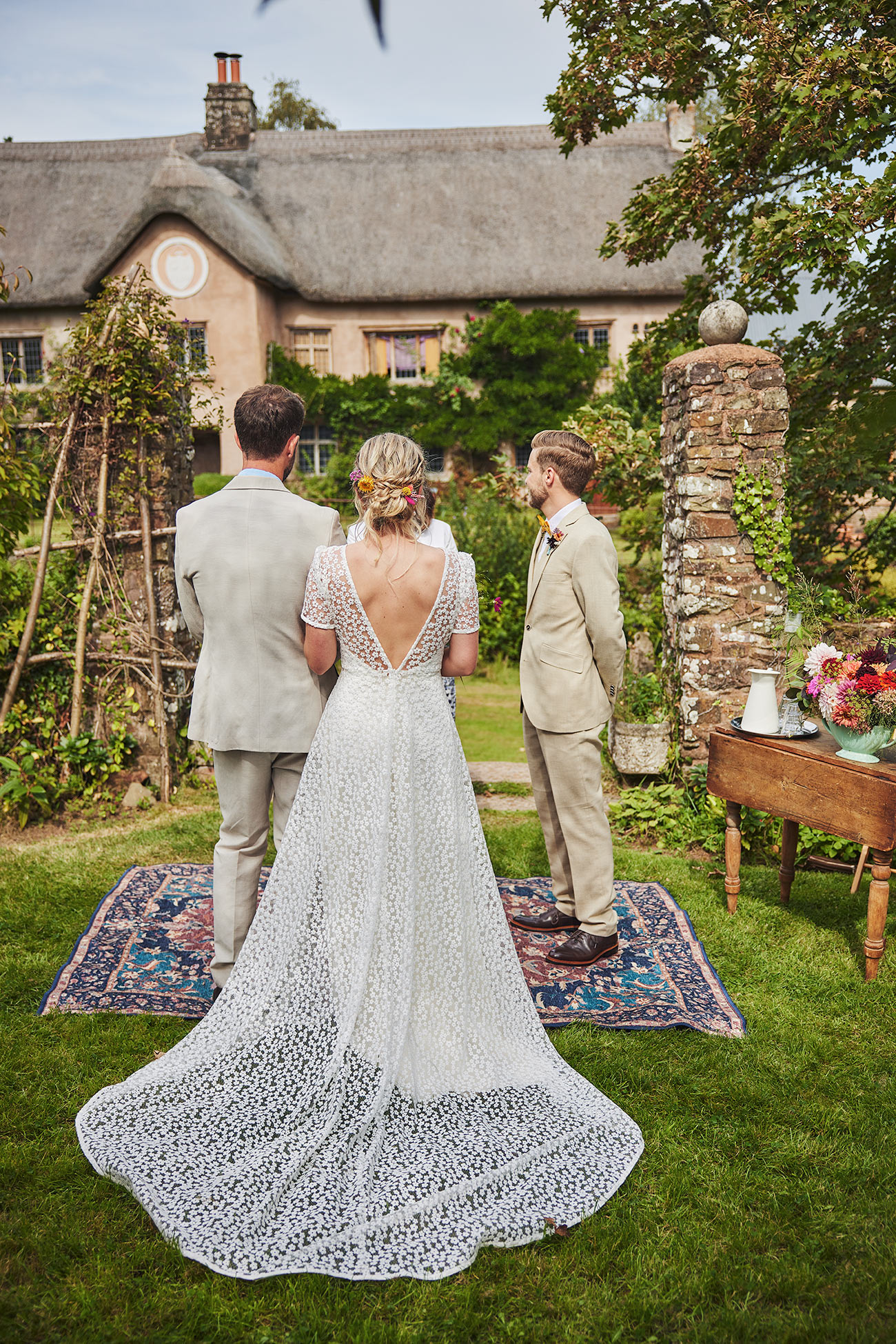 Walking out of the garden provided the couple with one of their favourite memories. “That first moment to ourselves as a married couple was so special,” reminisces Ellie. “We hugged, burst into tears and were just giddy with happiness.” The celebrations began with a Devon cream tea while guests supped on champagne and played garden games in the sunshine to the soundtrack of musician (and Hayne owner) Tim and his gypsy trio.