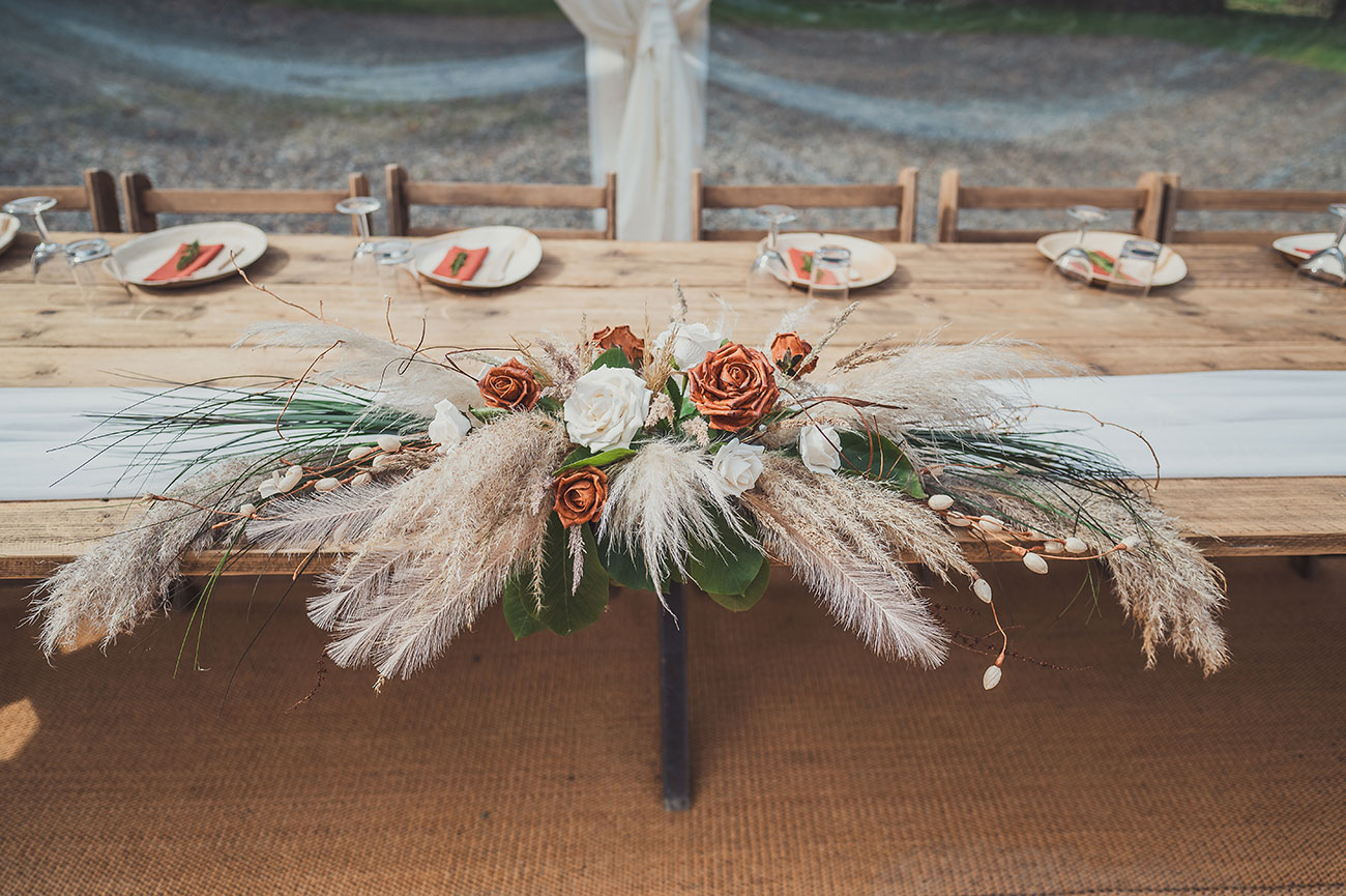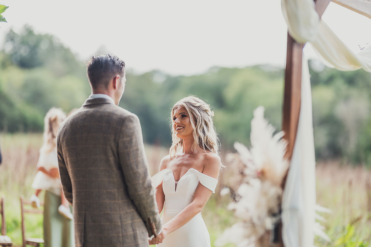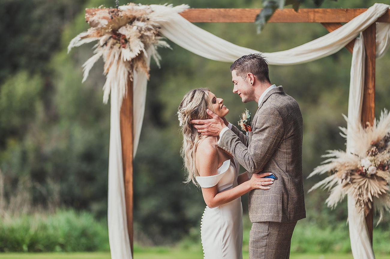 Exchanging vows beneath an arch dressed with dried flowers and framing views across the valley, the close of the ceremony provided a memorable moment for Summer. “Just as the ceremony finished, a butterfly landed on Marley and did not leave his side for most of the day! Butterflies to me have always represented my sister who unfortunately couldn’t be at our wedding but she is a true free spirit, just like a butterfly,” she says. “But they have a deeper meaning than that, as we have always thought the butterfly represented her twin who sadly passed away at birth, so it was an extra special moment for myself, feeling as if they were both there with us.”