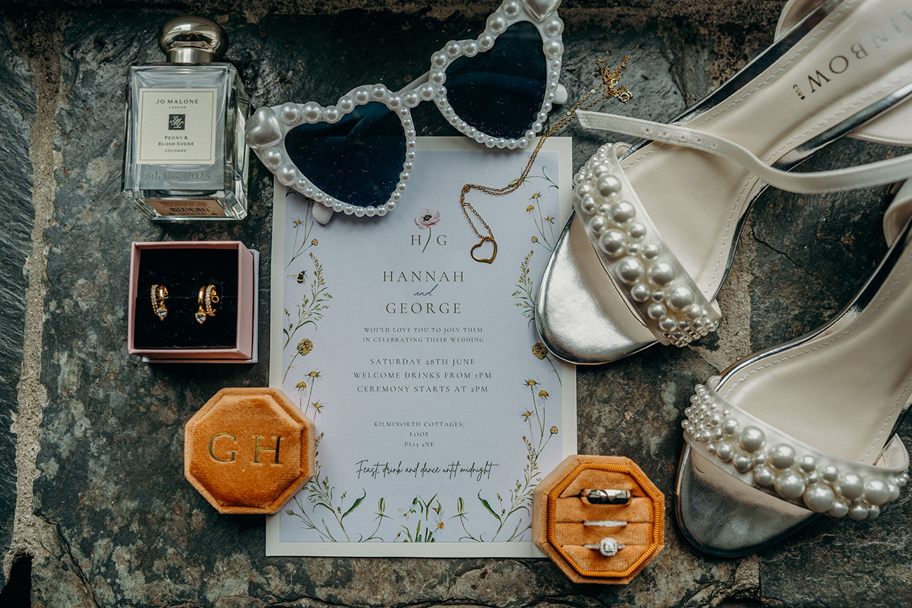 Personal touches set the tone from the moment guests arrived. Each cottage was stocked with welcome hampers filled with tea, coffee, Hannah and George’s favourite snacks and a personalised wedding newspaper. “Our guests loved these extra details,” says Hannah.