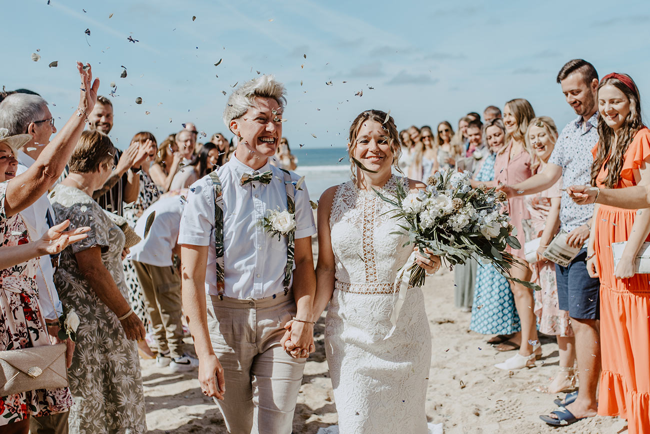 And the festivities didn’t end when the evening drew to a close, with the couple celebrating the next morning with a post-wedding surf with their photographer – featuring Vikki in her wedding dress! When it comes to advice, Jen and Vikki have a top research tip " Use Instagram to look at photographers and florists' work to get a feel for who is right for you and share ideas of what you like," says Jen.